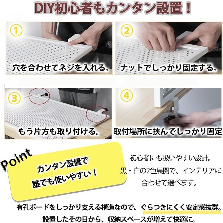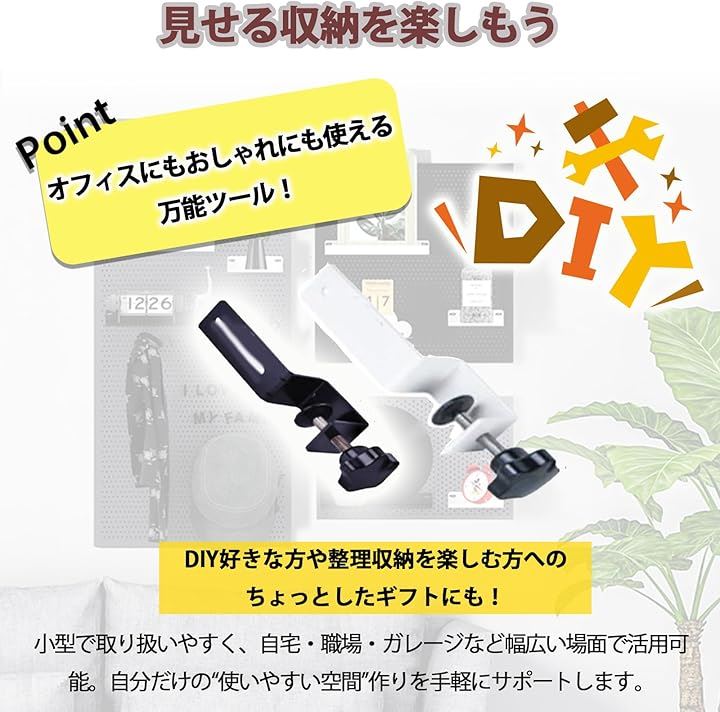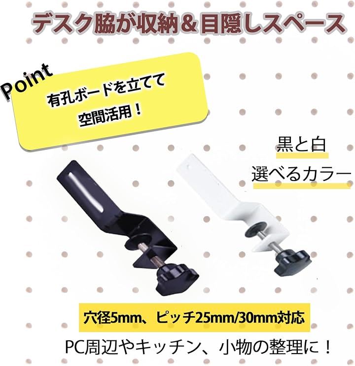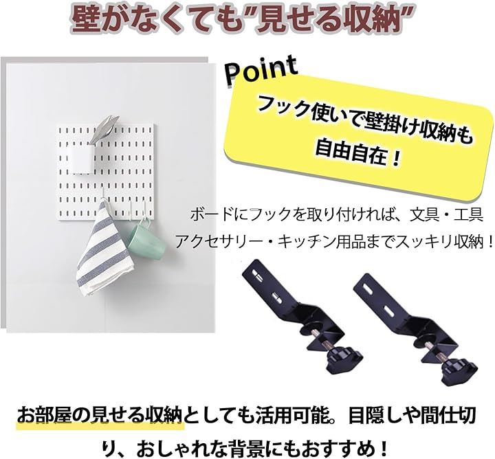 有孔ボード 固定金具 2個セット デスク設置 壁面収納 DIY 壁掛け 間仕切り 目隠し