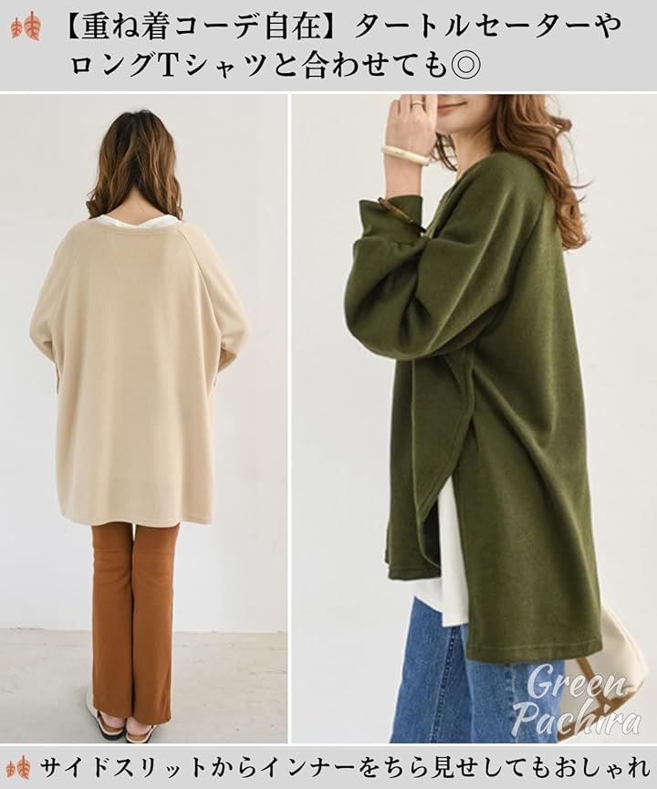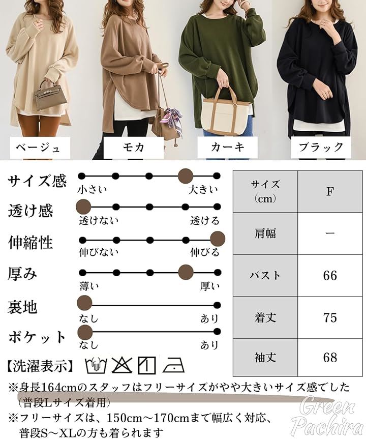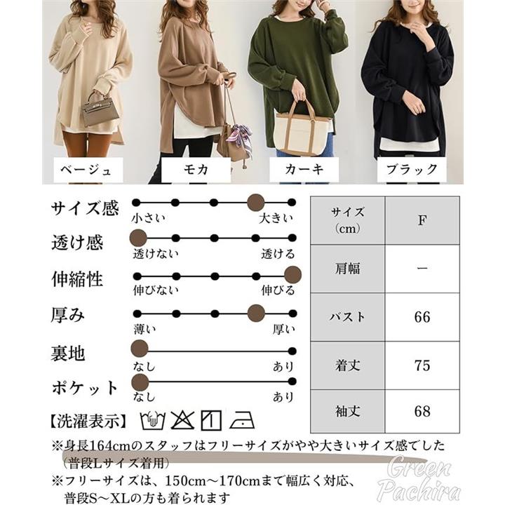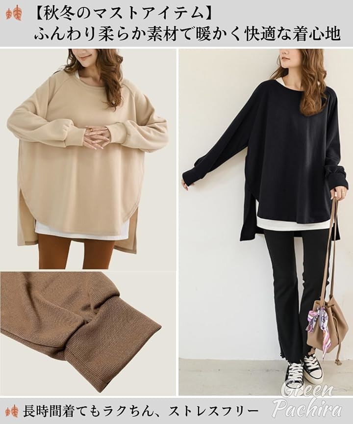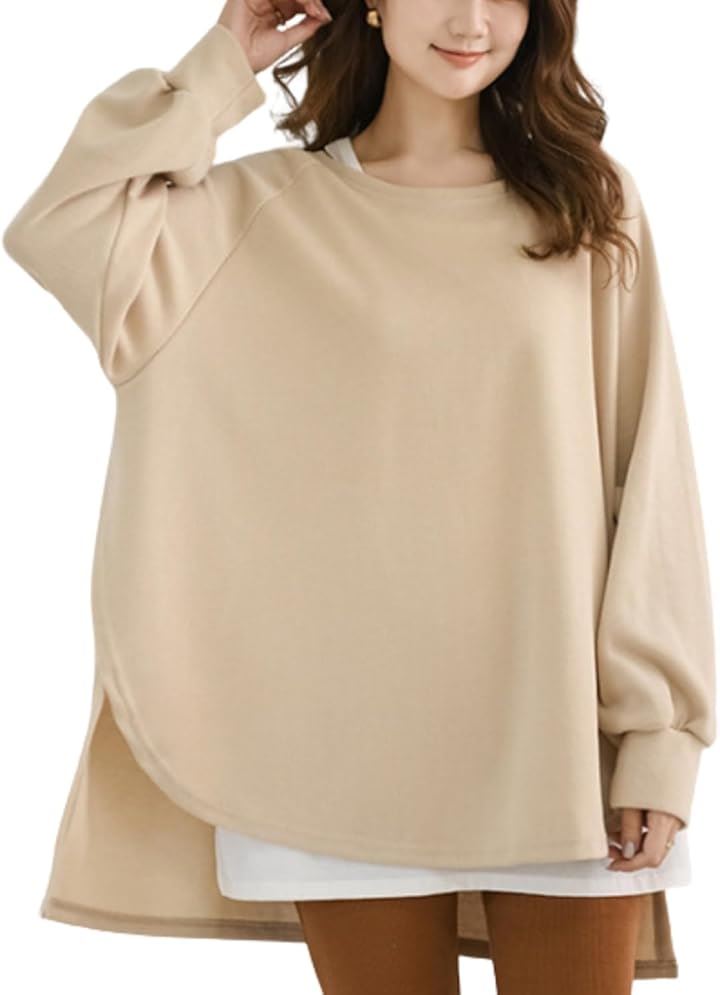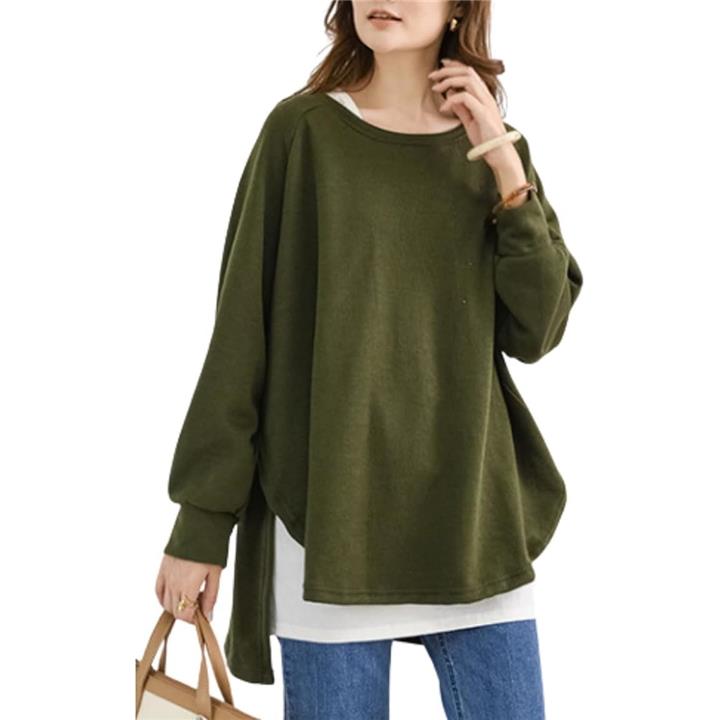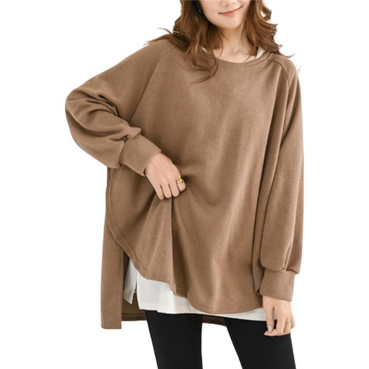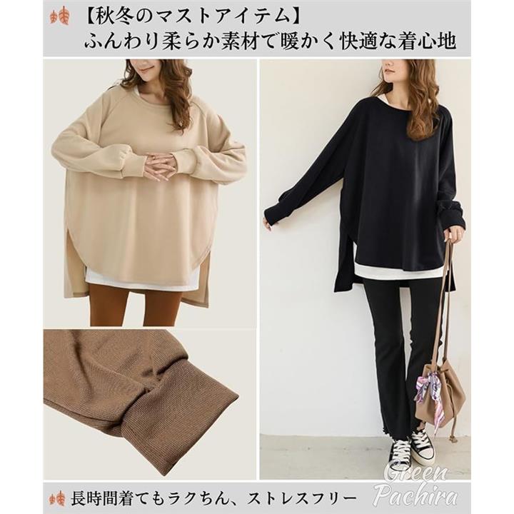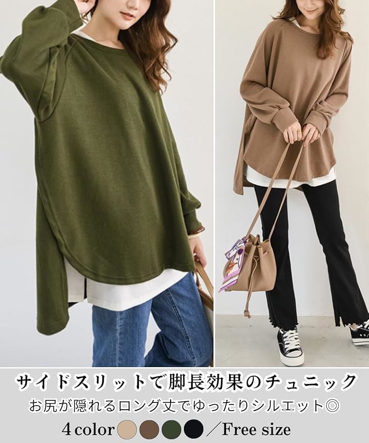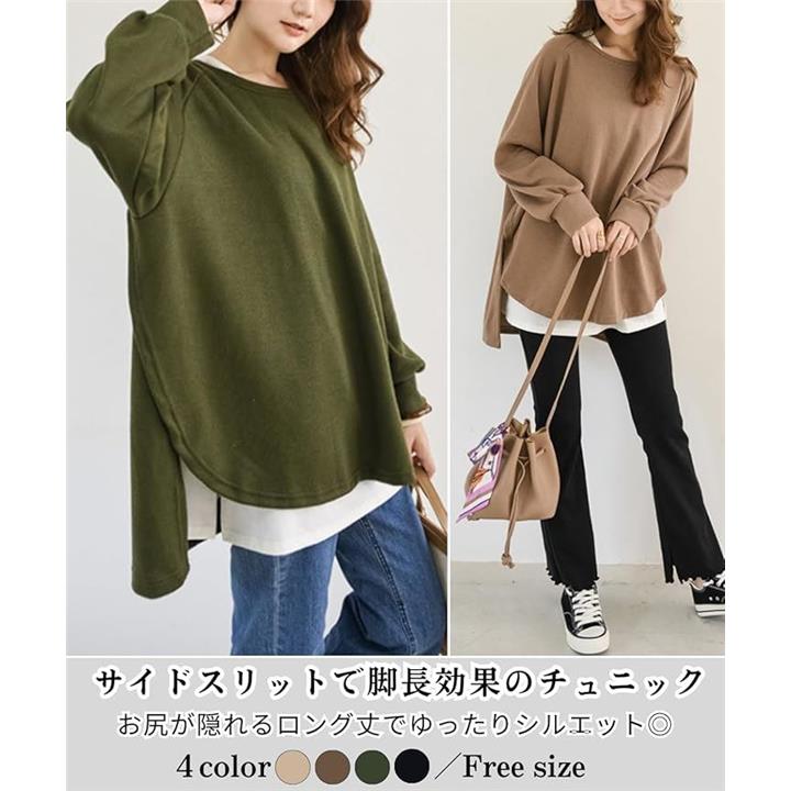 チュニック レディース 秋冬 着痩せ トップス 長袖 ゆったり お尻が隠れるトップス トレーナー スウェット カットソー 体型カバー 大きめ プルオーバー 重ね着 着回し シンプル 無地
