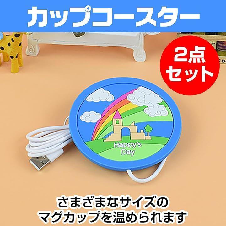 カップコースター 2個セット ドリンクウォーマー USB給電式 保温 オフィス デスク 家庭 リビング 卓上 子供 プレゼント
