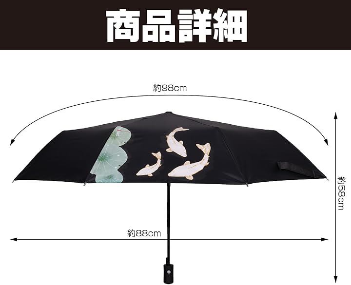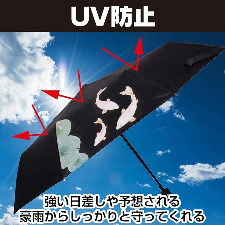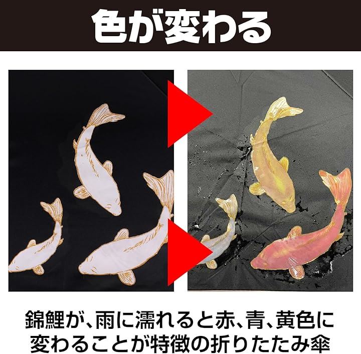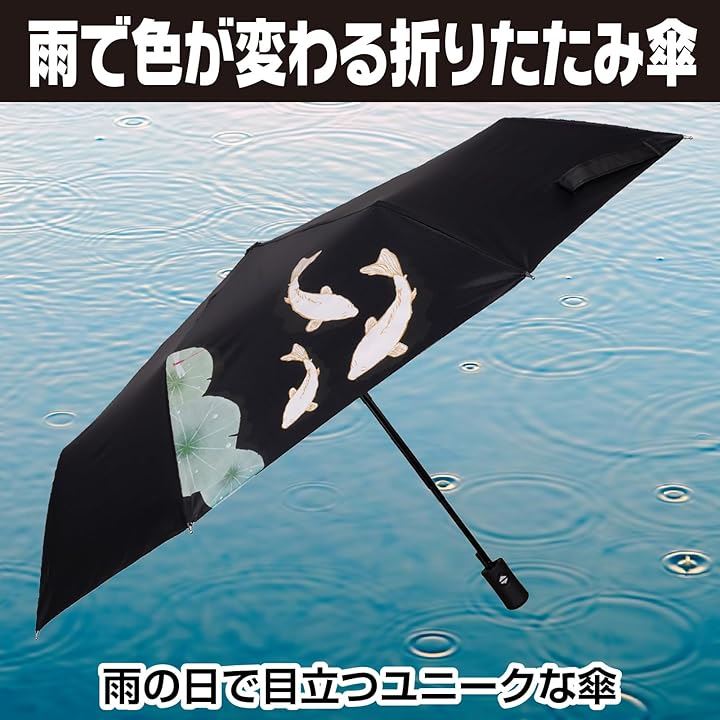 雨で色が変わる 折りたたみ傘 錦鯉 変色傘 濡れると変色 折り畳み 晴雨兼用 変色プリント UVカット 撥水 コンパクト