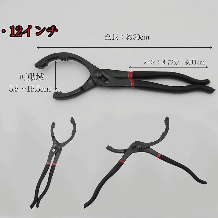オイルフィルターレンチ 12インチ プライヤー式 エレメント交換 オイル交換 工具