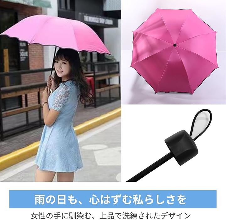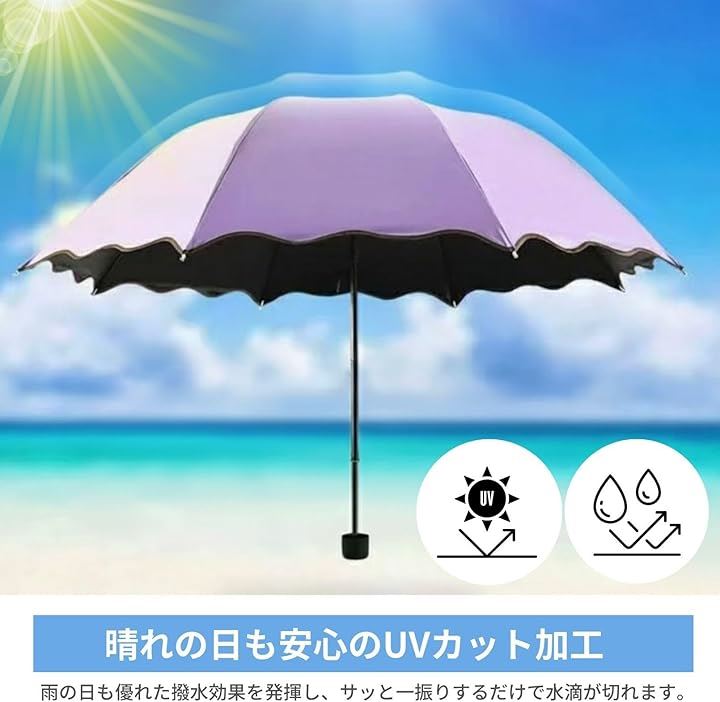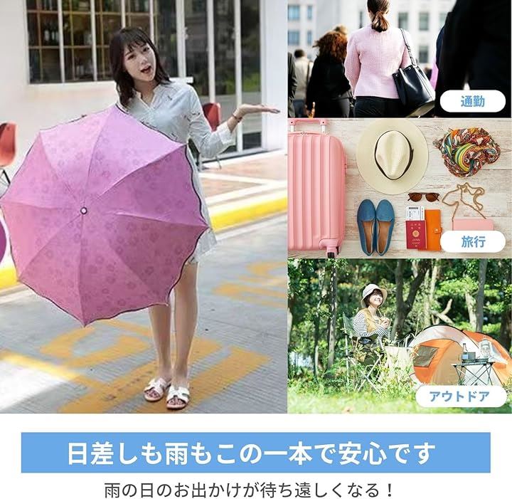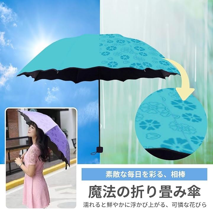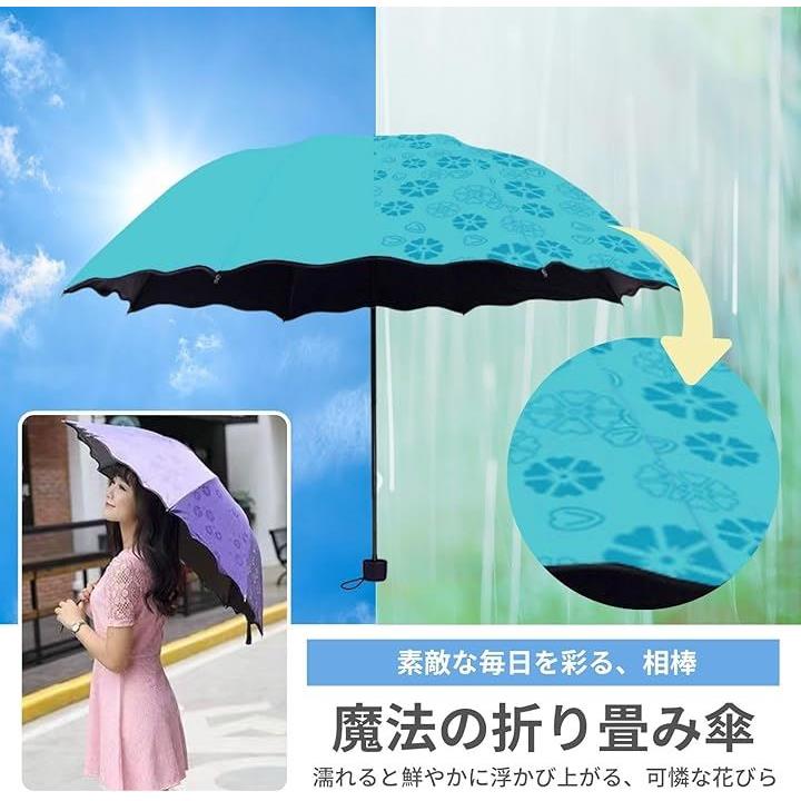 色が変わる傘 花びら 折りたたみ傘 変色傘 ユニーク傘 折り畳み傘 晴雨兼用 変色プリント 濡れると変色 UVカット 撥水