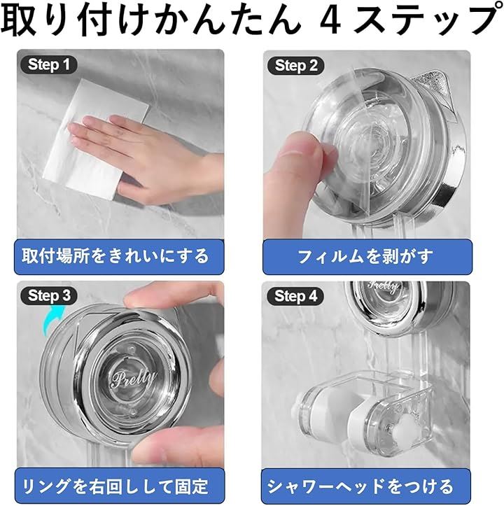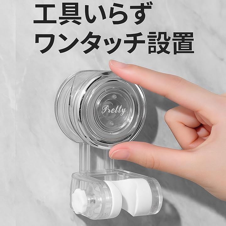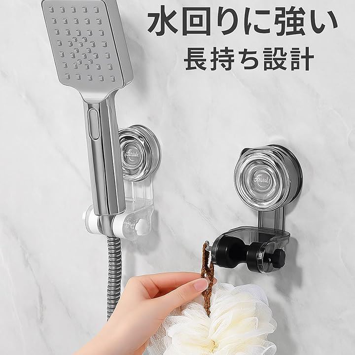 シャワーヘッドホルダー 強力粘着 吸盤式 防水 防錆 角度調整 シャワーフック
