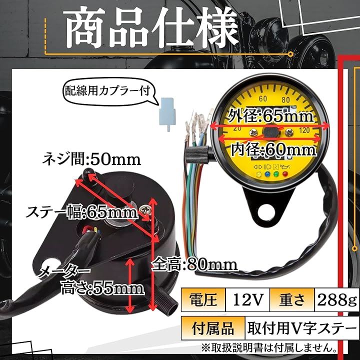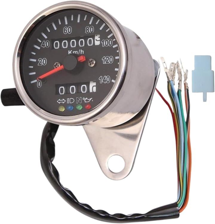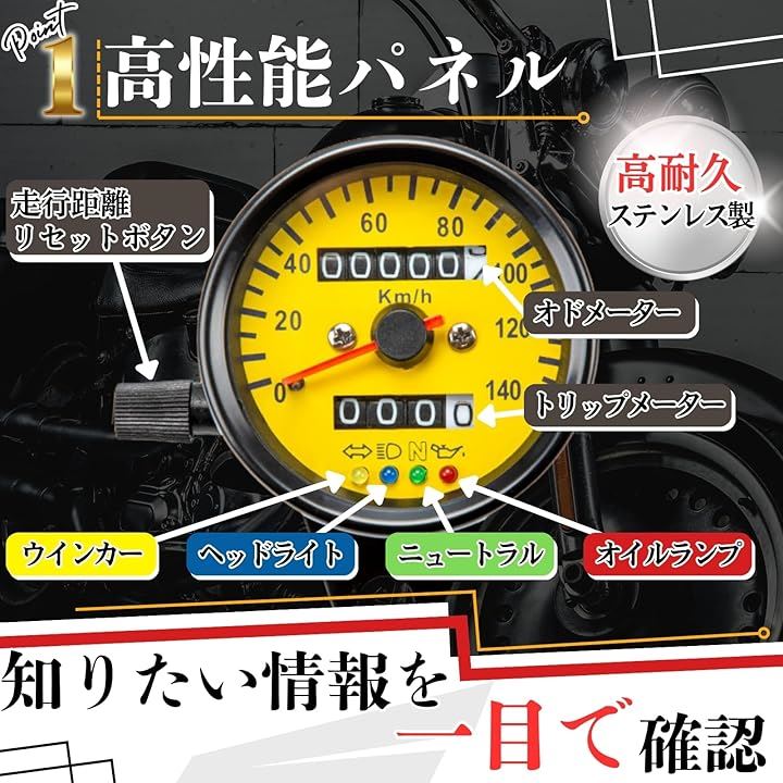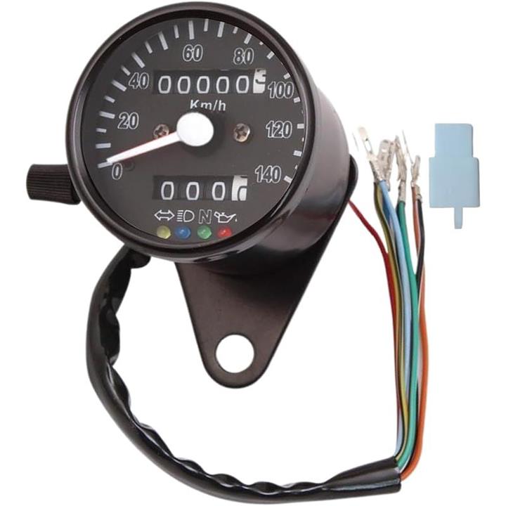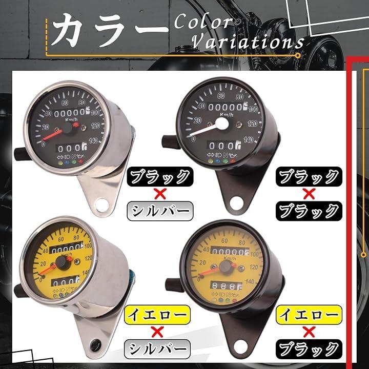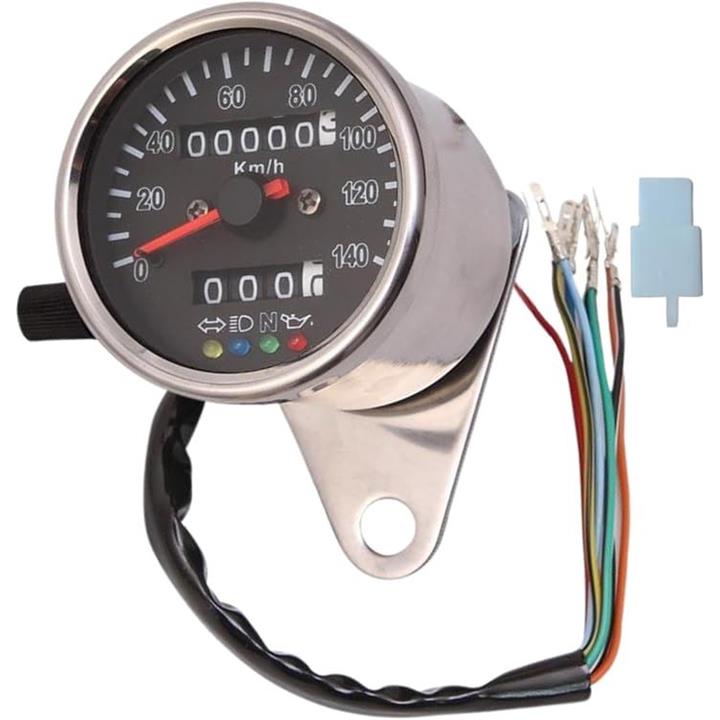 互換品 バイク スピードメーター 機械式 LED 140km/h 汎用 トリップメーター オドメーター 多機能インジケーター搭載
