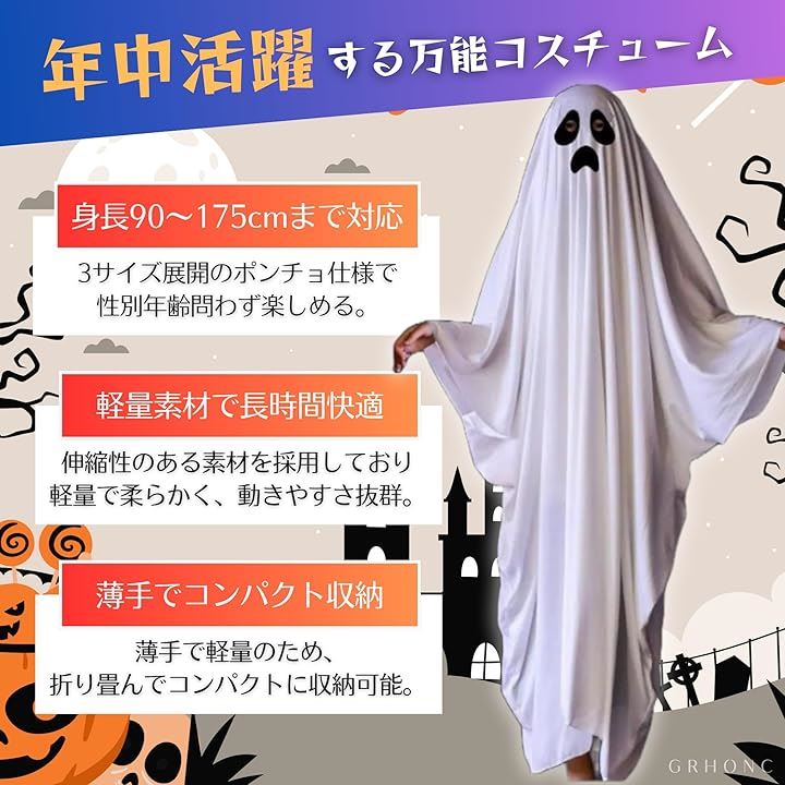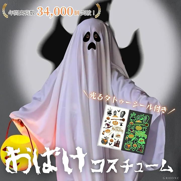 ハロウィン コスプレ 子供 大人 マント ポンチョ 仮装 衣装 ホラー ゴースト 幽霊 タトゥーシール付き