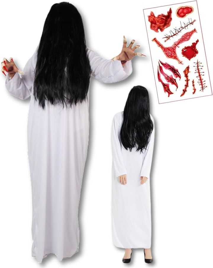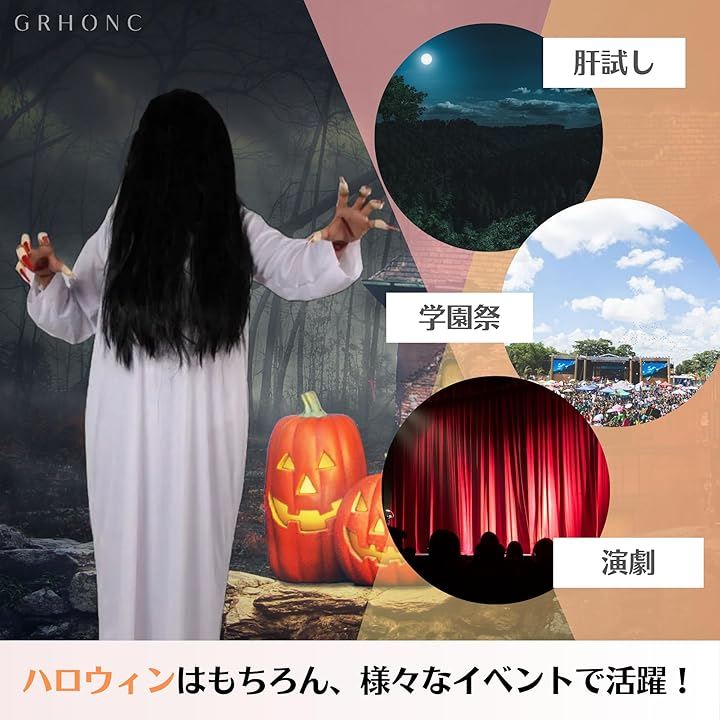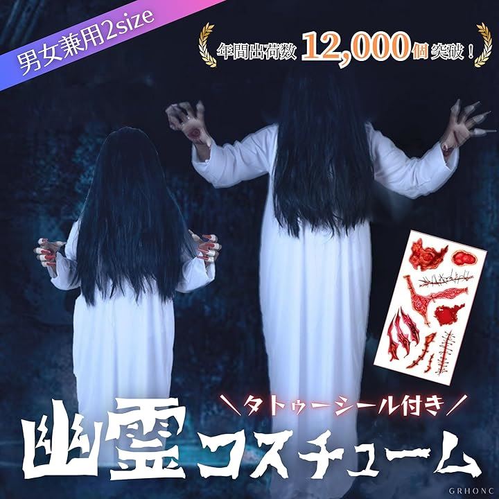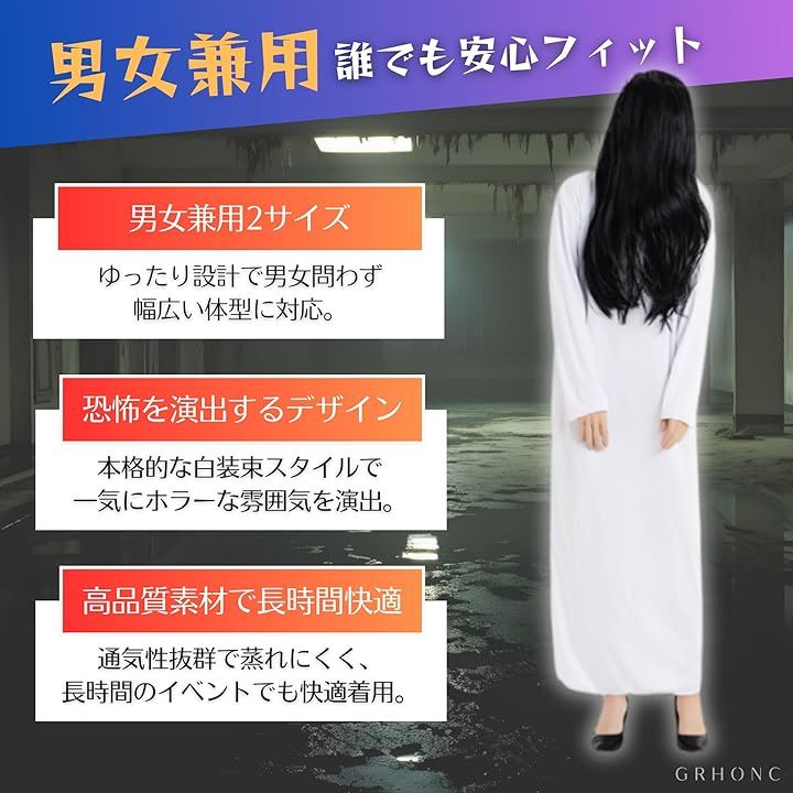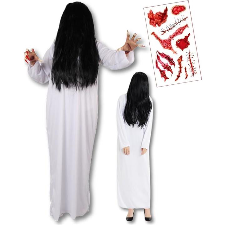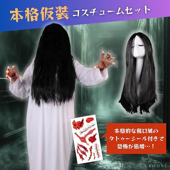 ハロウィン コスプレ ホラー おばけ 仮装 衣装 男女兼用 学園祭 演劇 白装束 ウィッグ タトゥーシール