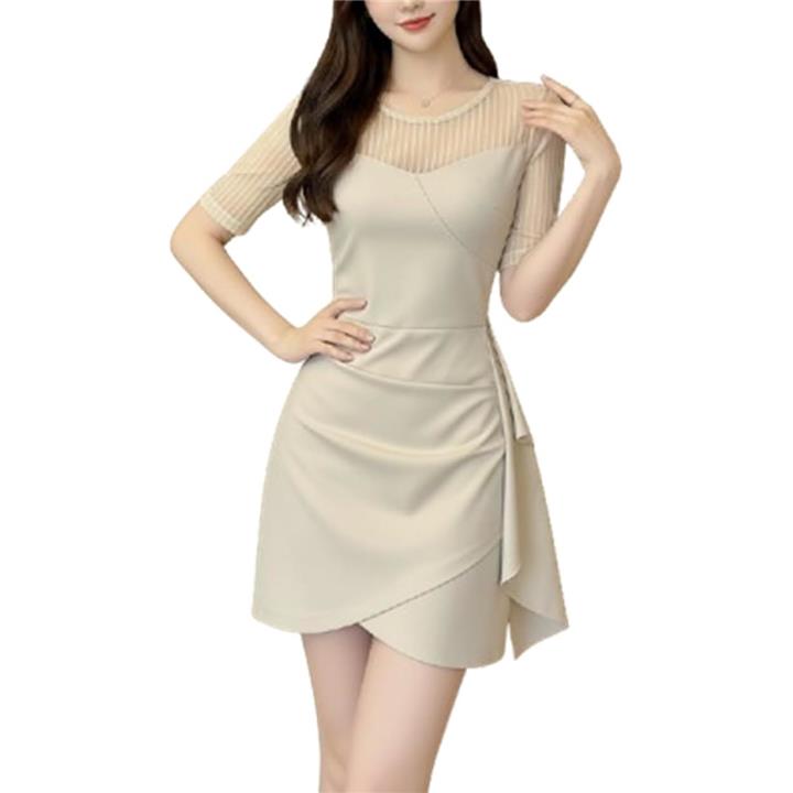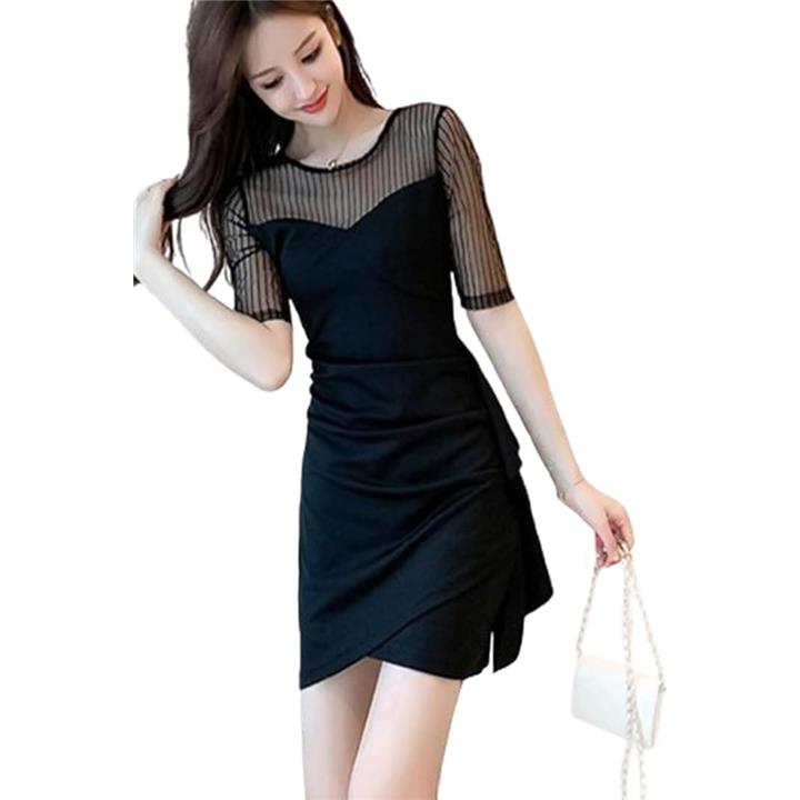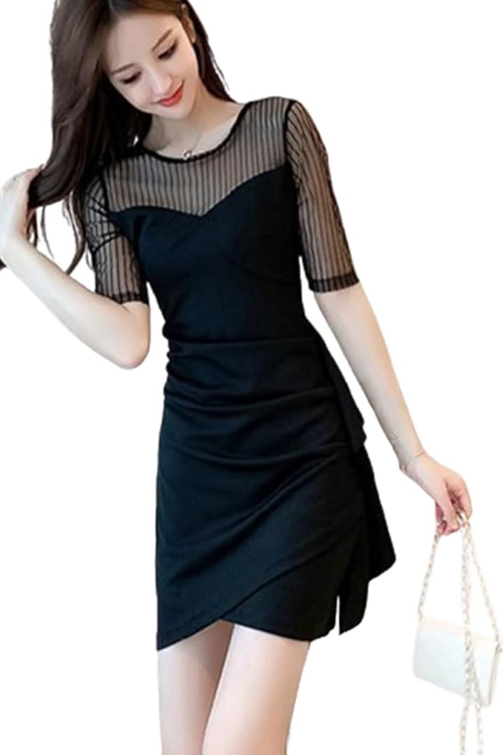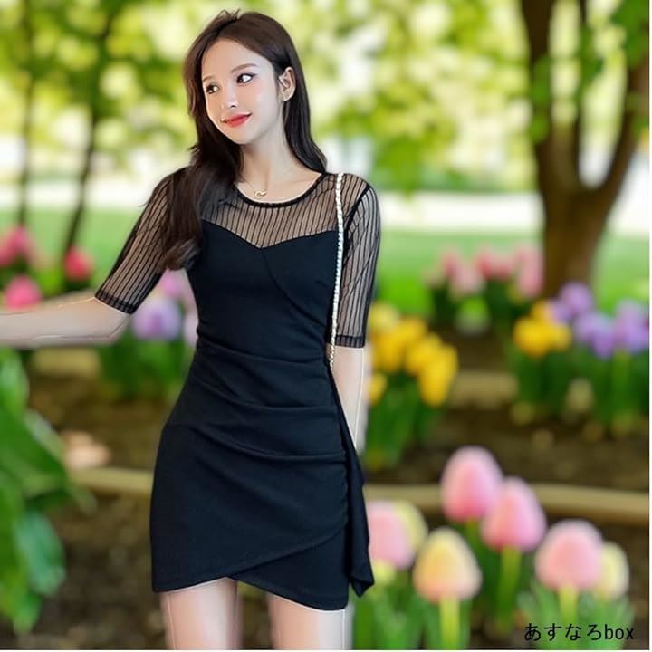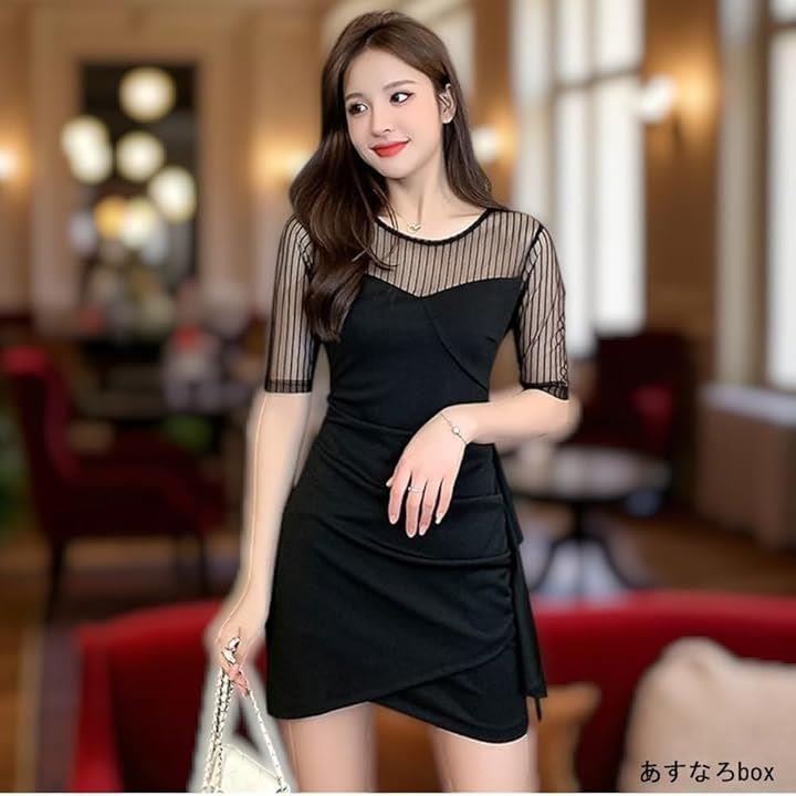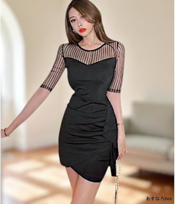 [あすなろbox] ワンピース レディース ドレス タイト ミニ丈 ストライプ シースルー袖 上品 パーティー 二次会 キャバ 通勤 オフィス |