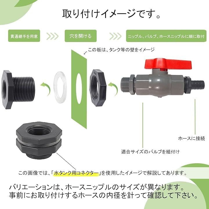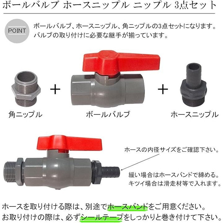 3/4 インチ ボールバルブ ホースニップル ネジ 塩ビ 水タンク 継手 排水