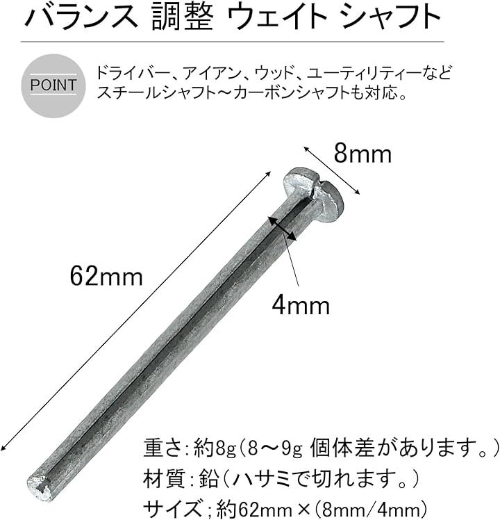 ゴルフクラブ バランス用 鉛 シャフト 調整 重り ウェイト ドライバー アイアン 8g
