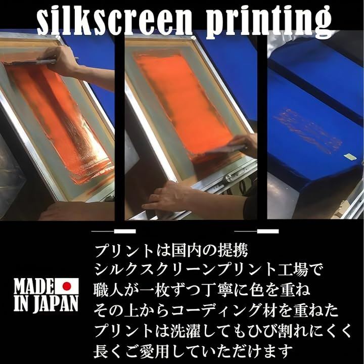 一枚ずつ手作業でプリントする“シルクスクリーン”を用いているため、洗濯を繰り返してもプリントが割れにくいのがポイント。