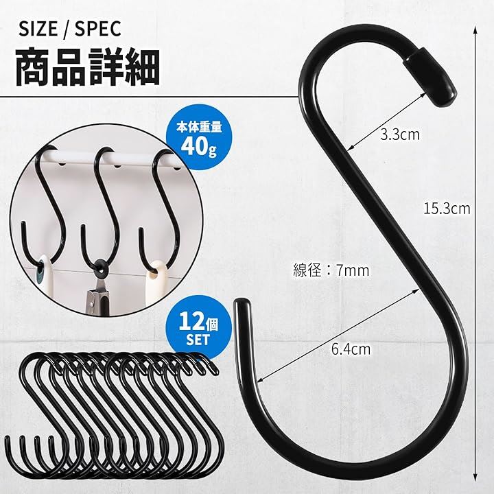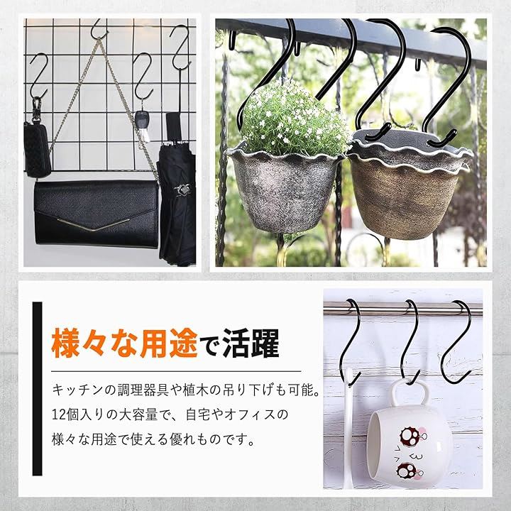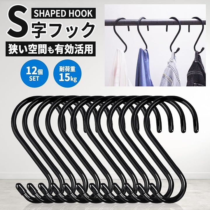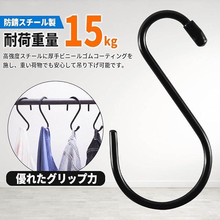 S字フック 12個 大きい 頑丈 滑り止めゴムコーティング 落ちない 吊り下げ 屋外