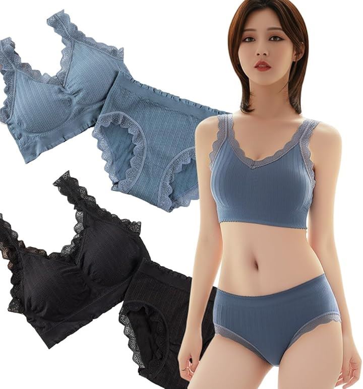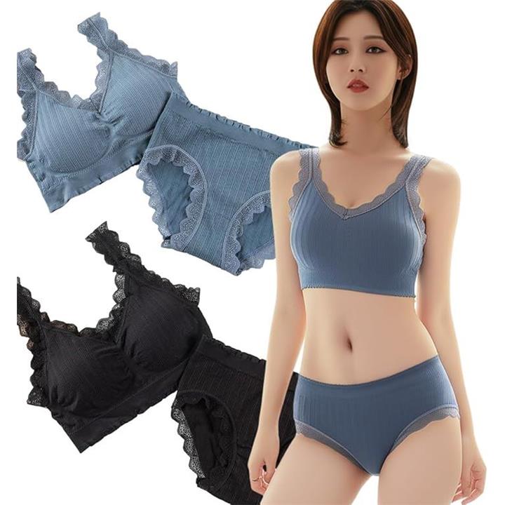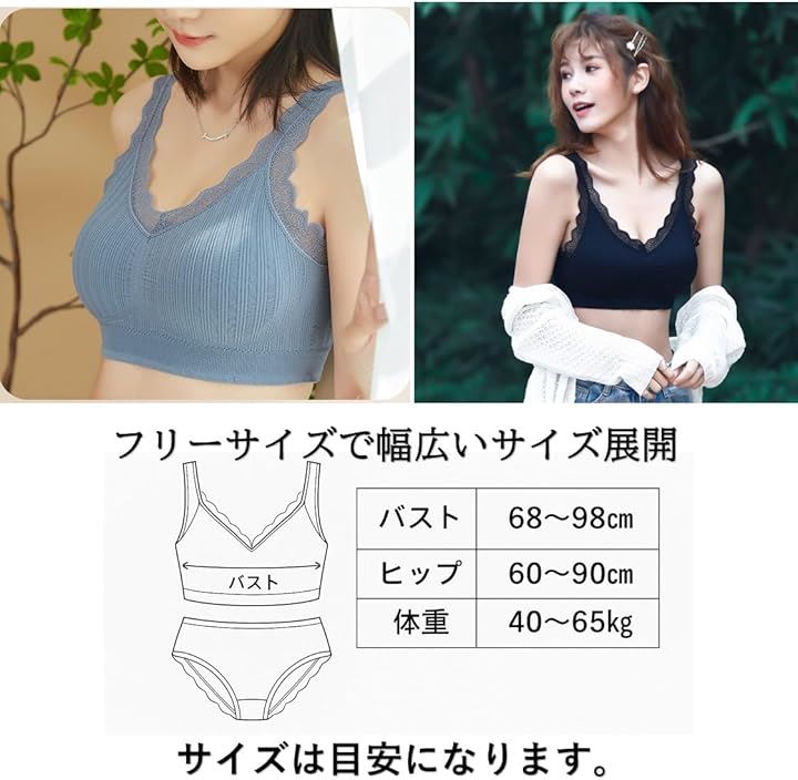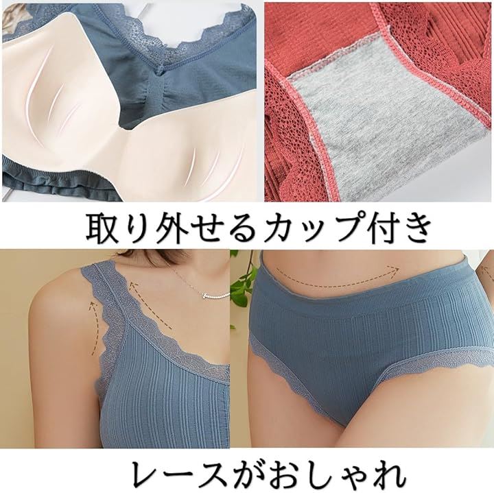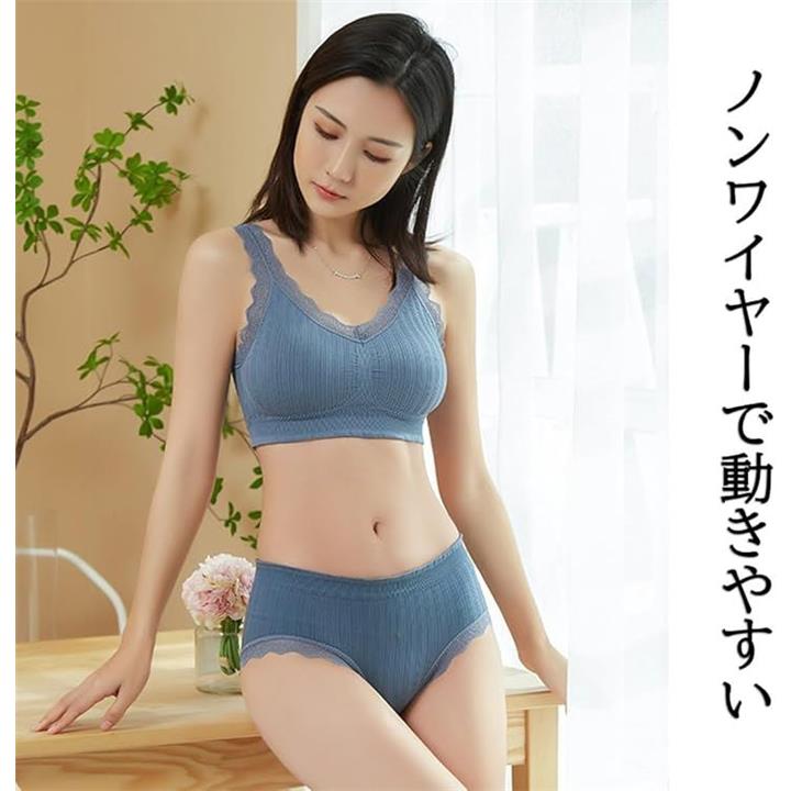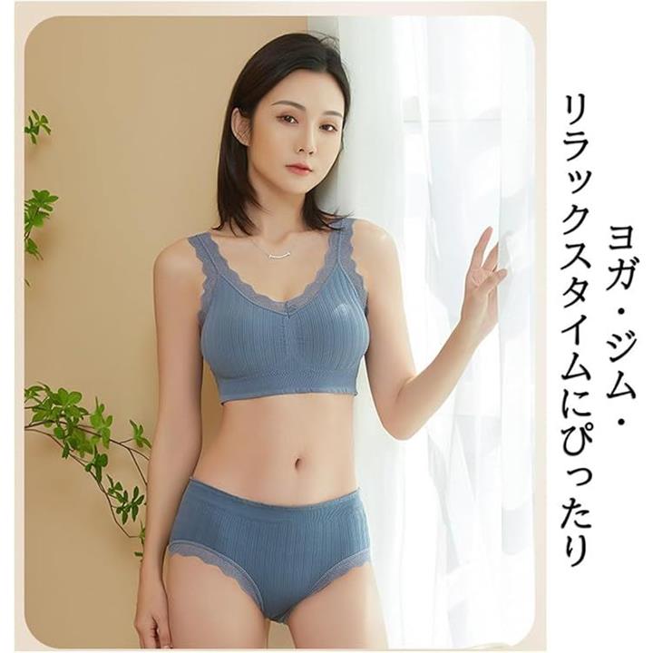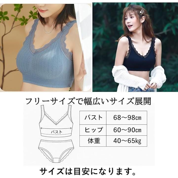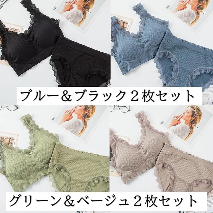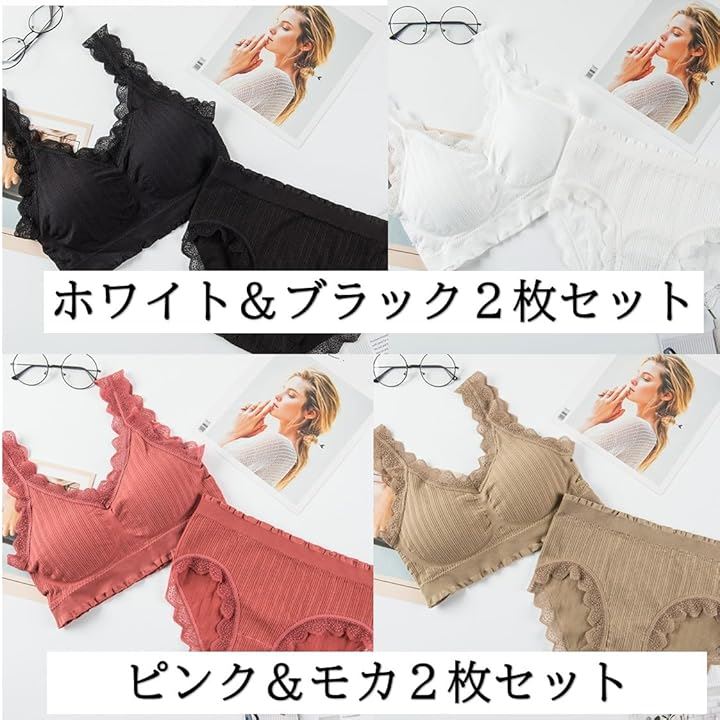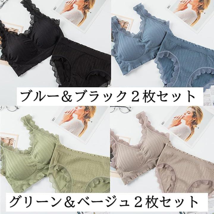 下着 レディース 上下 セット 2枚セット ノンワイヤーブラ ショーツ レース フリーサイズ