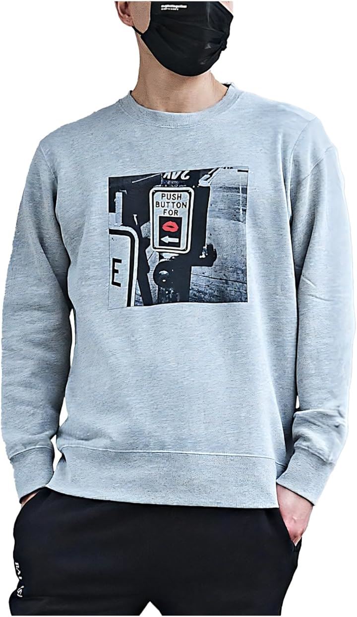 [クロスマーベリー] プリントトレーナー メンズ 綿100 薄手 秋 冬 長袖 おしゃれ スウェット アメカジ アウトドア 日本製 ストリート プルオーバー クルーネック ルームウェア オリジナル カジュアル B12-GY-XL |