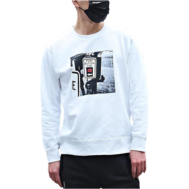 キスマークが印象的なデザインのトレーナー。
