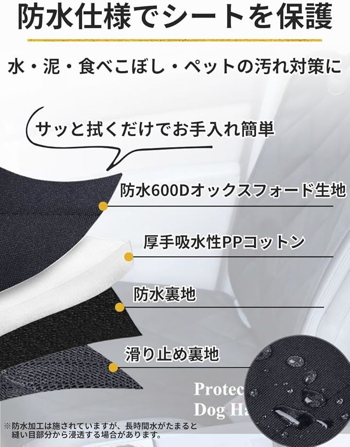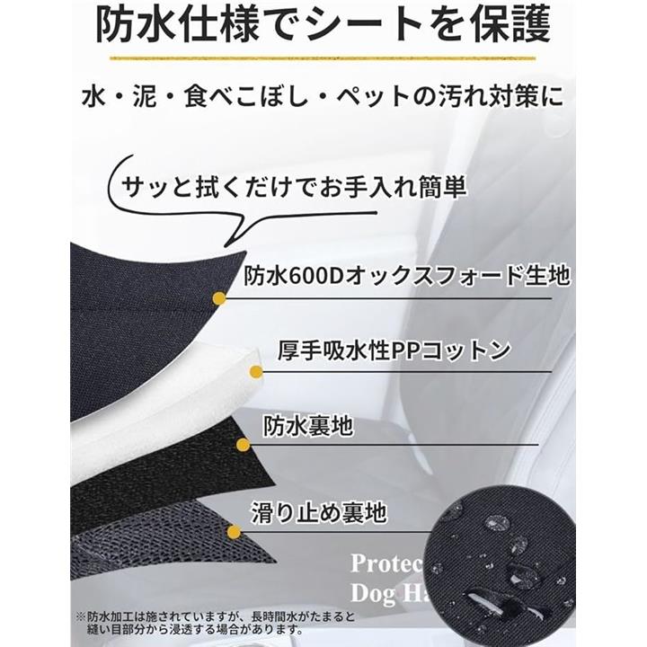 自動車の座席を泥、砂、ペットの毛や爪、汗、食べこぼしからしっかりと保護し、長距離ドライブや日常使いでも愛車のシートを清潔に維持します。