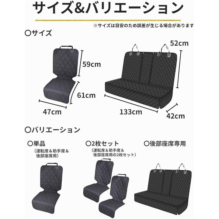 「商品仕様」〇バリエーション:シングル(運転席&助手席&後部座席用)、ダブル(運転席&助手席&後部座席用の2枚セット)、後部座席専用。