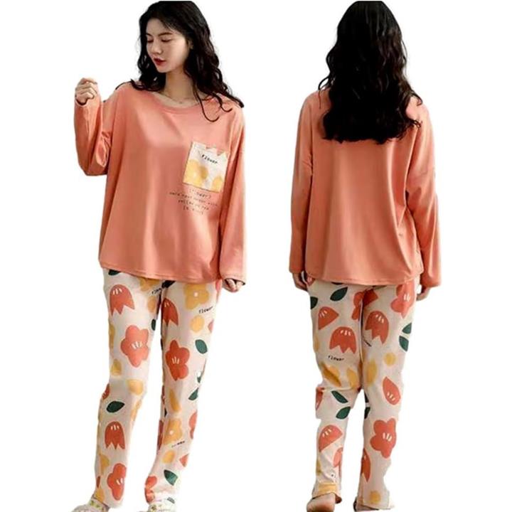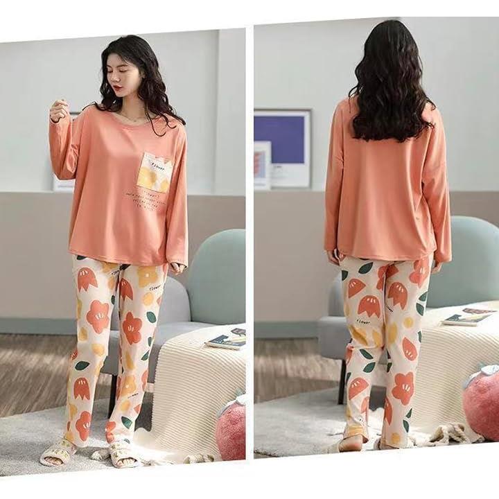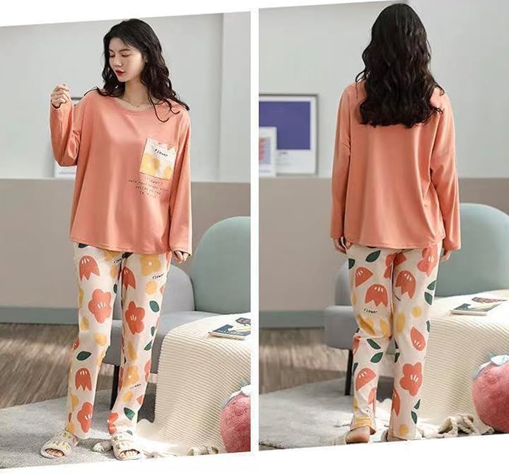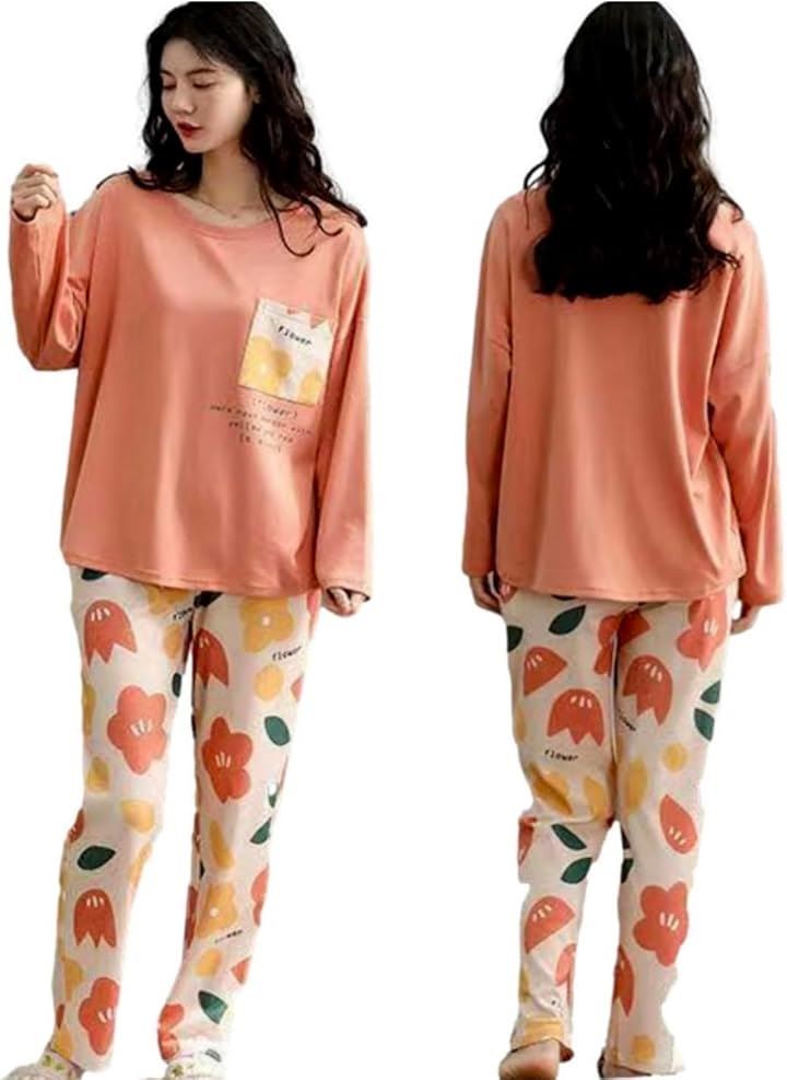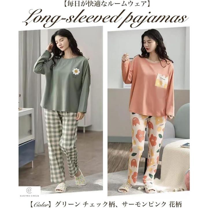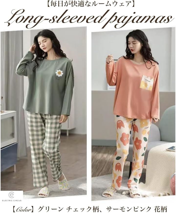 長袖 パジャマ 上下 セット Tシャツ 部屋着 寝巻き 入院 旅行 寝間着 ルームウェア レディース プリント柄