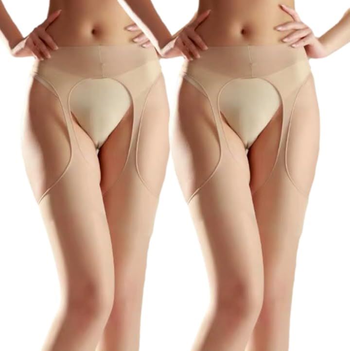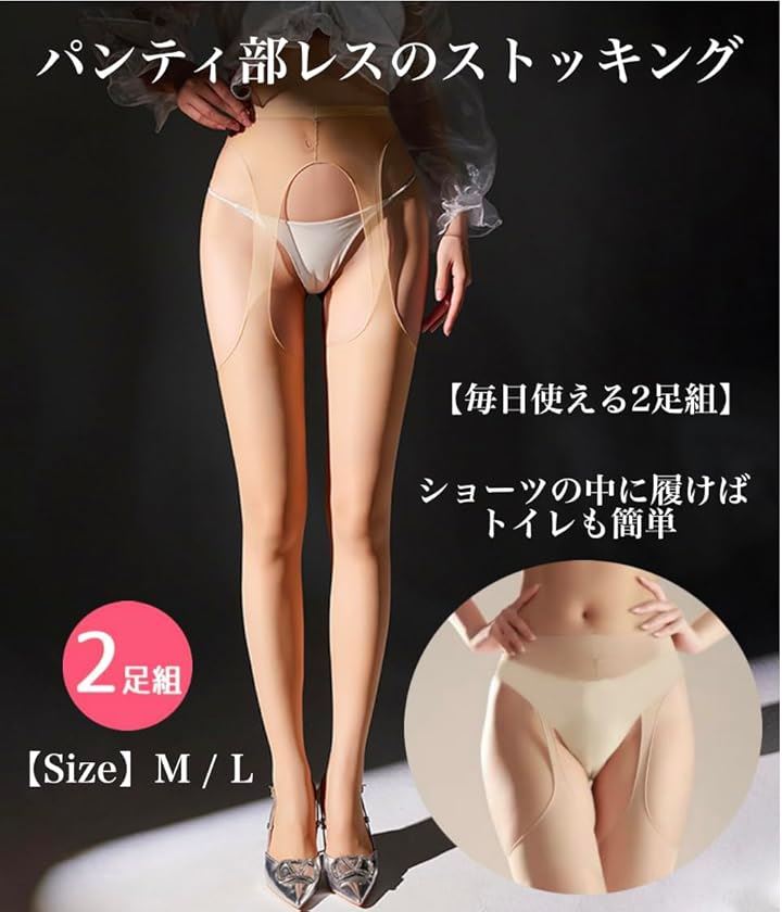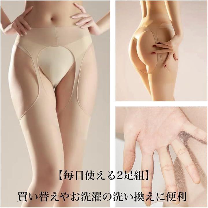 ストッキング 着脱不要 パンティ部レス 2足組 パンスト サスペンダー 穴あき ムレにくい レディース