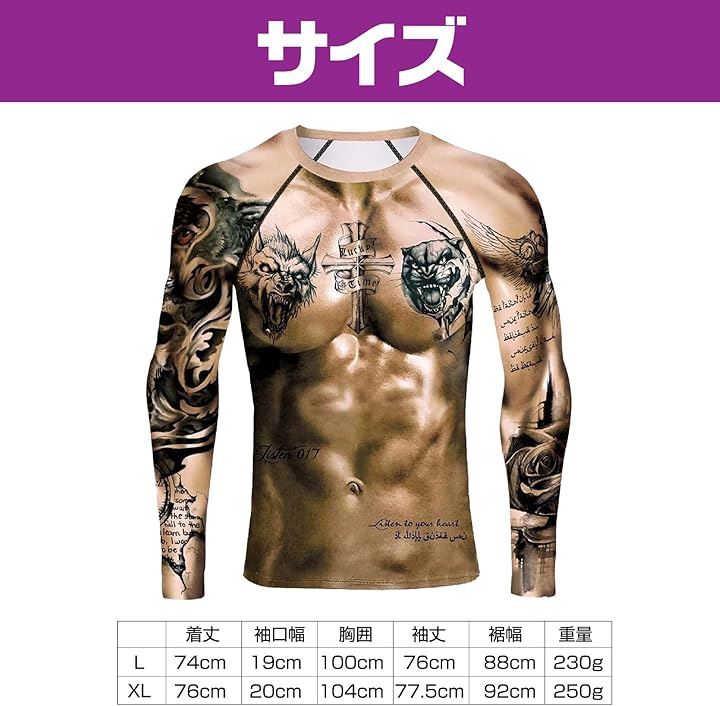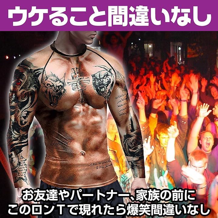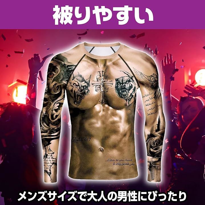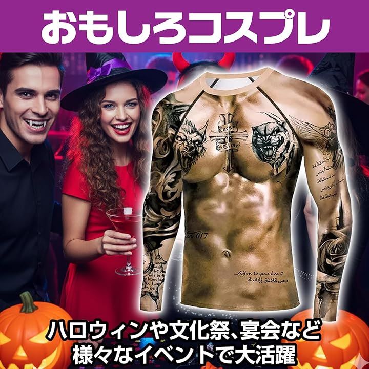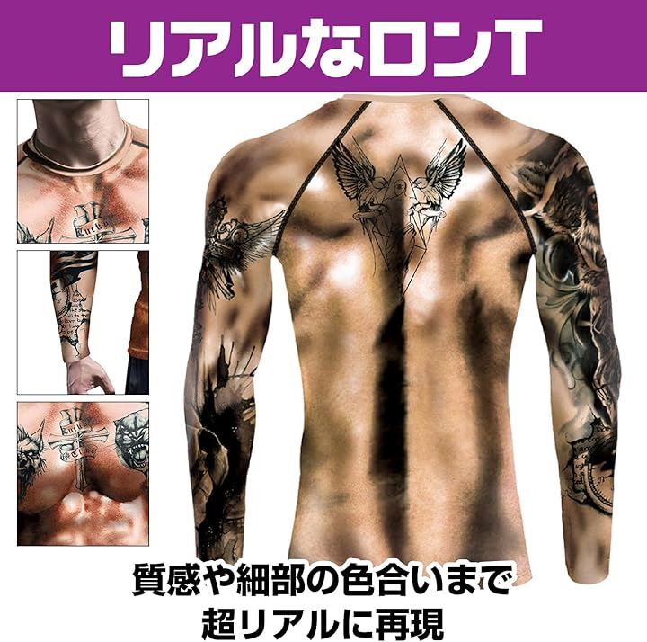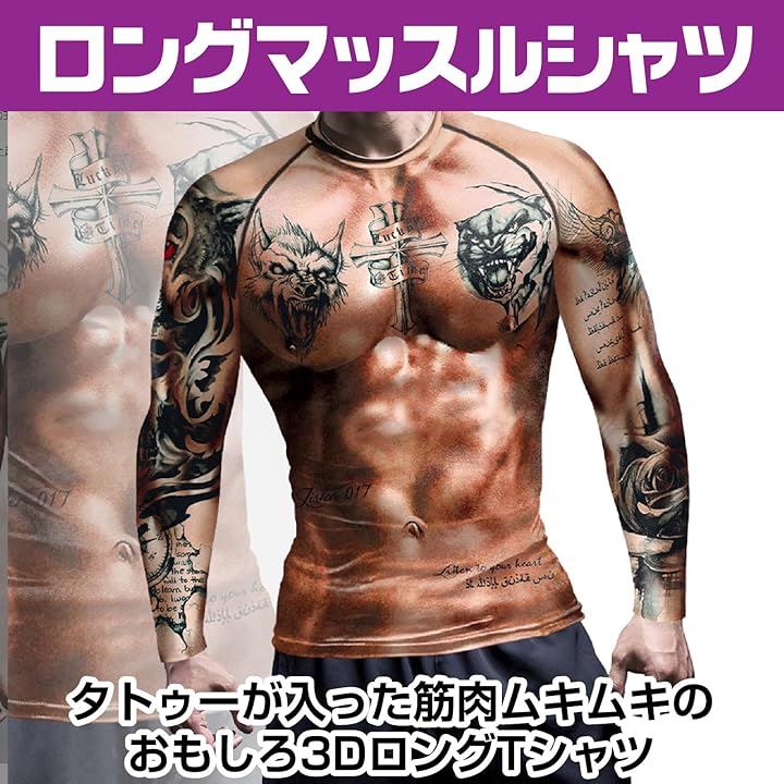 3DロングTシャツ タトゥーTシャツ マッスル コスプレ衣装 ハロウィーン イベント 仮装 長袖
