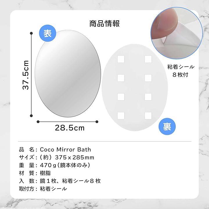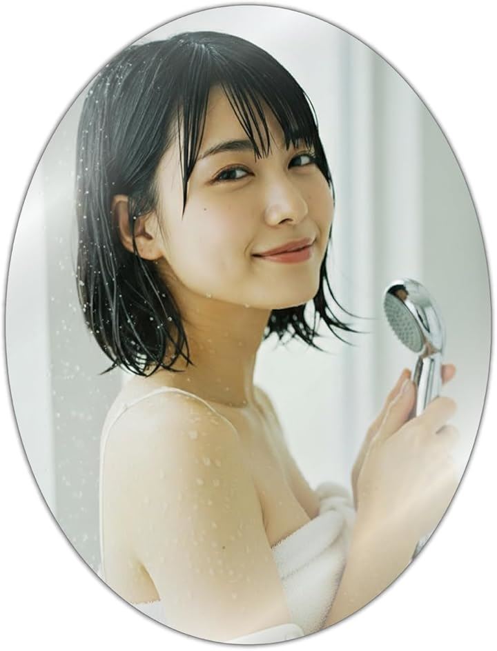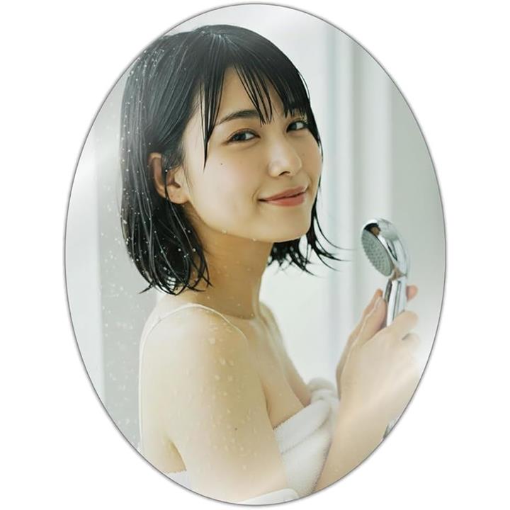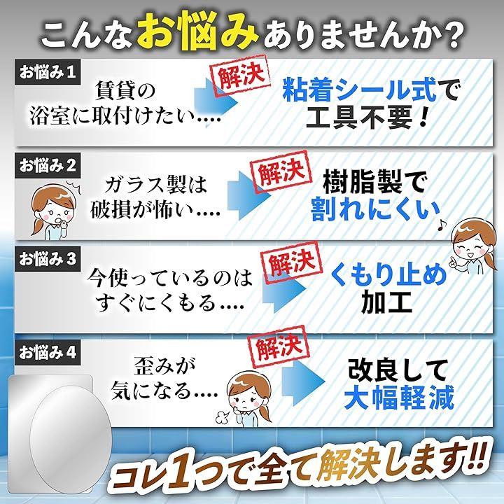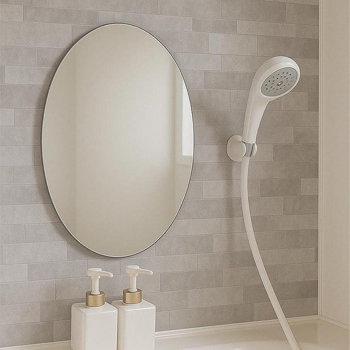 専門家監修/クリアな映像 浴室鏡 お風呂鏡 粘着シール式 くもりにくい オーバル 歪み軽減モデル