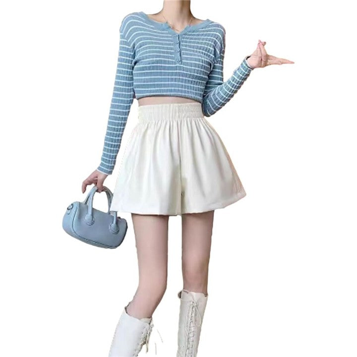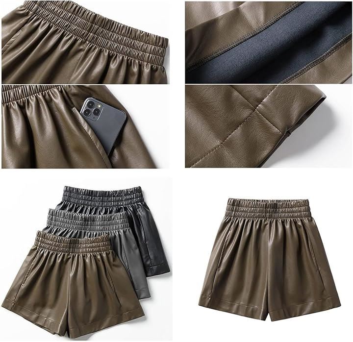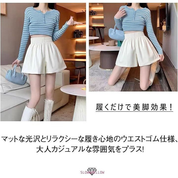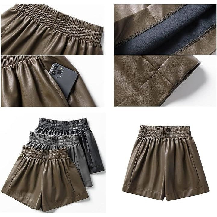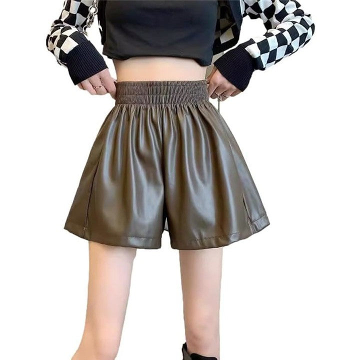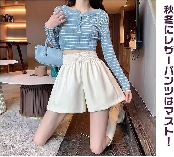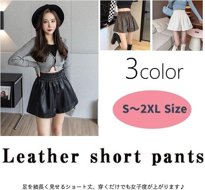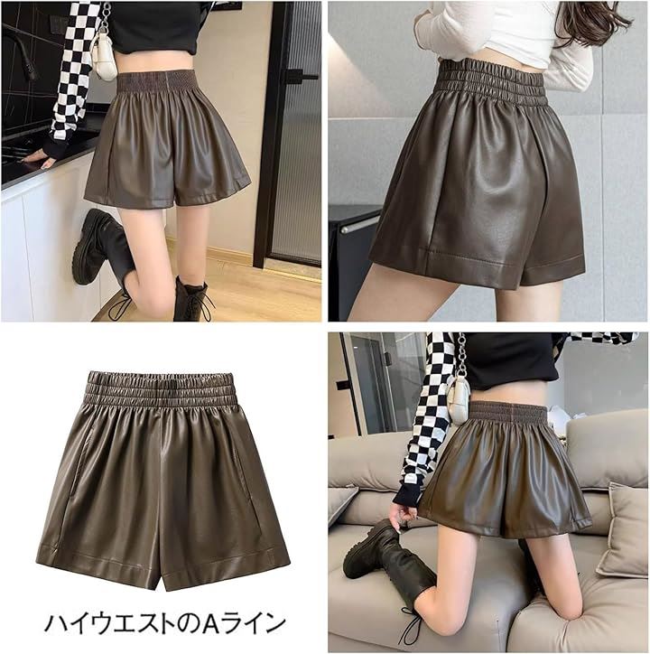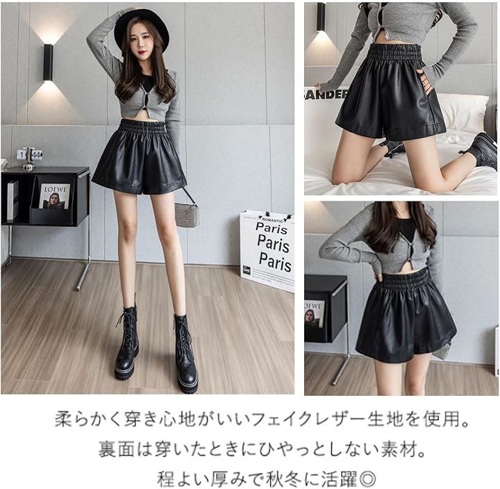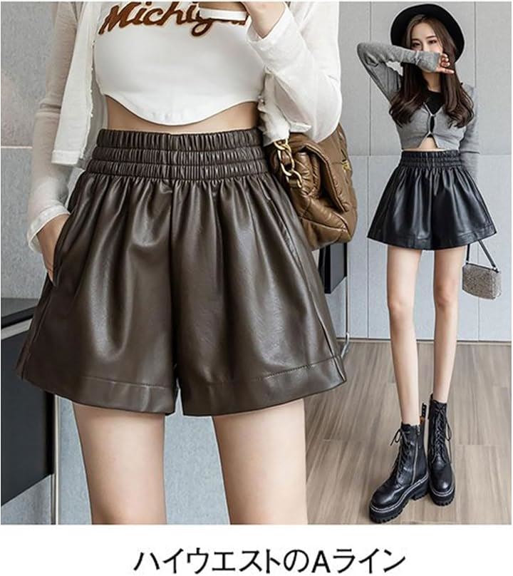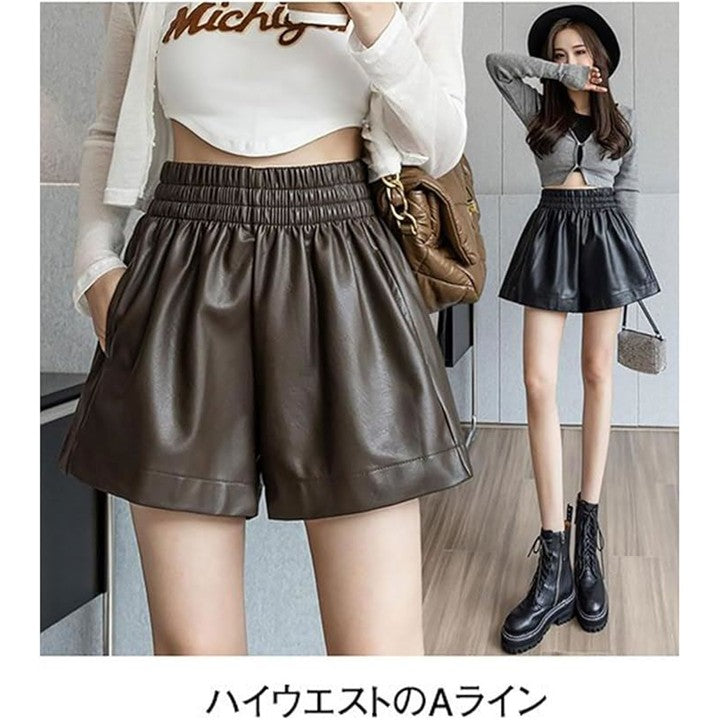 ショートパンツ フェイク レザー Aライン カジュアル ホット パンツ ショーパン シンプル ウエストゴム 韓国 お洒落 ボトムス 3カラー PU レザー ボトム ハーフパンツ |