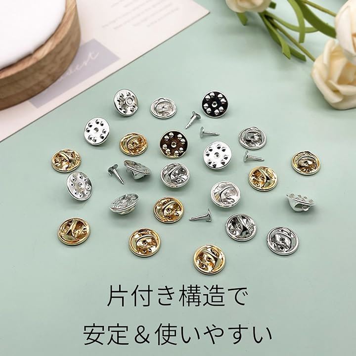 ピンバッジ 留め具 社章 ピンバッチ 直径11mm バタフライ型クラッチ 100個セット