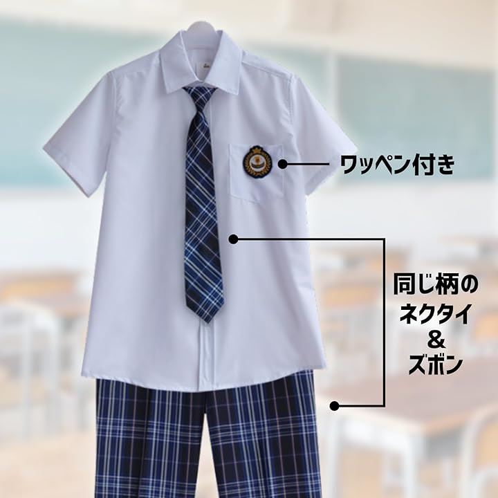 制服 学生服 男子 半袖 ズボン ネクタイ ワッペン 4点セット