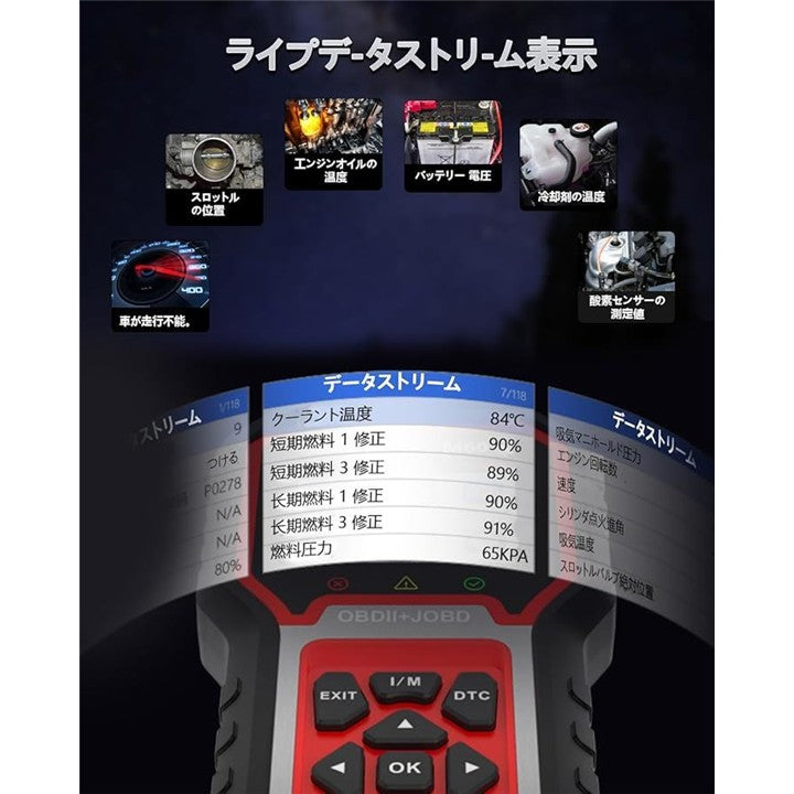 OBD2 + JOBD対応 診断儀 M601トヨタ/ホンダ/レクサス/サイオン/アキュラ/日産/インフィニティ/マツダ専用 日本車対応故障コード読み取り・消去・全システムデータ解析 obd2診断機 データ転送・100項目データ表示・クラウド印刷対応 3.5インチカラー便携式自動車診断器 メニュー 日本語表示可 |