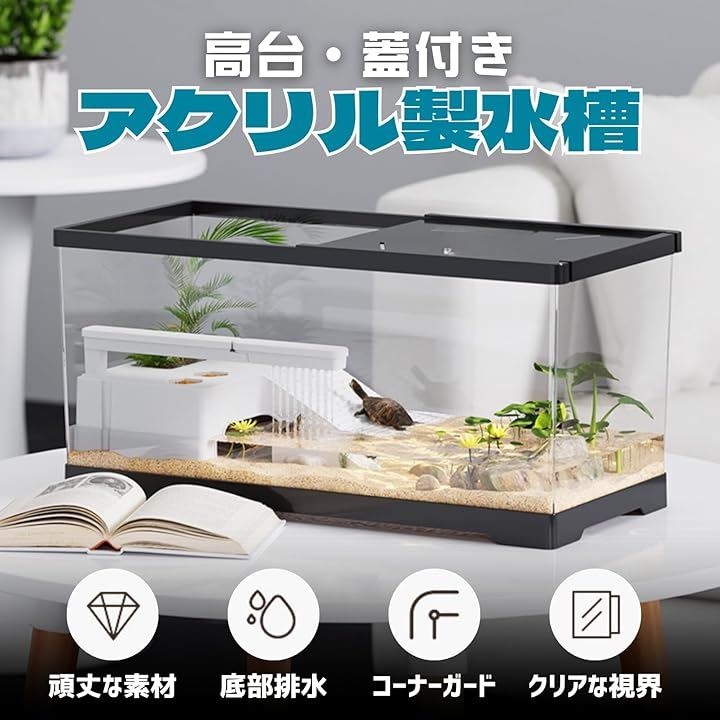 亀 水槽 飼育ケース ケージ 高台 蓋付き アクリル製