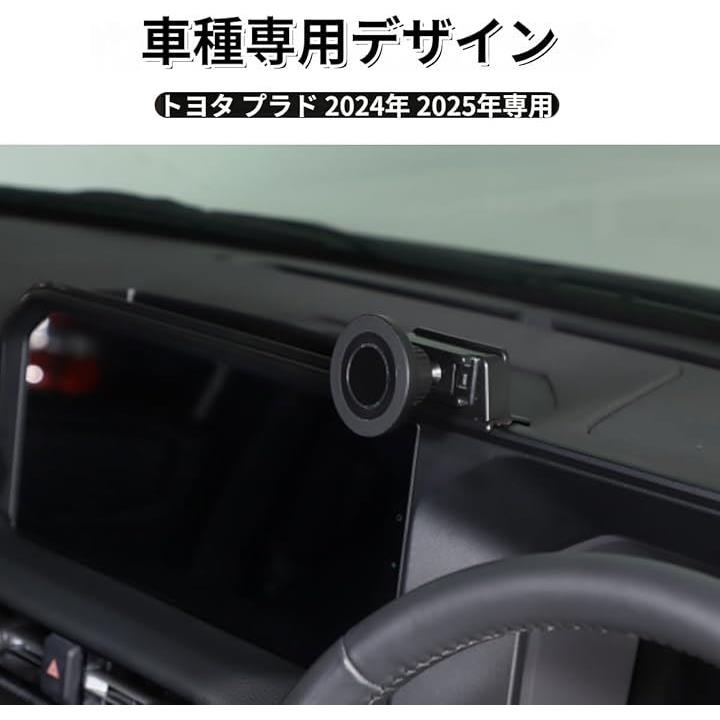 トヨタ プラド 2024年 2025年に対応 車用 スマホホルダー マグネット 2㏌1携帯ホルダー 多機能収納トレイ 収納ボックス ナビゲーション収納ボックス スインサートトレイ 電話トレイ 小物入れ 360°回転可能