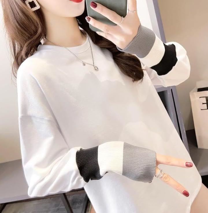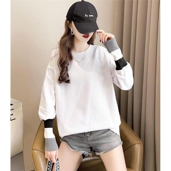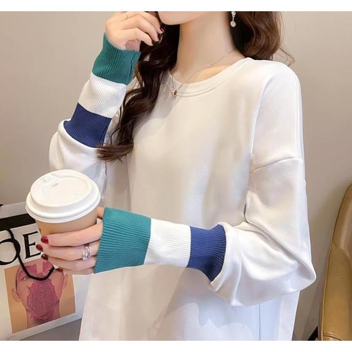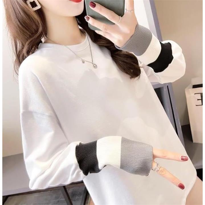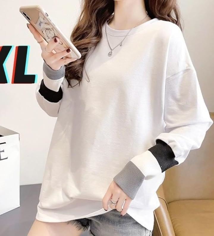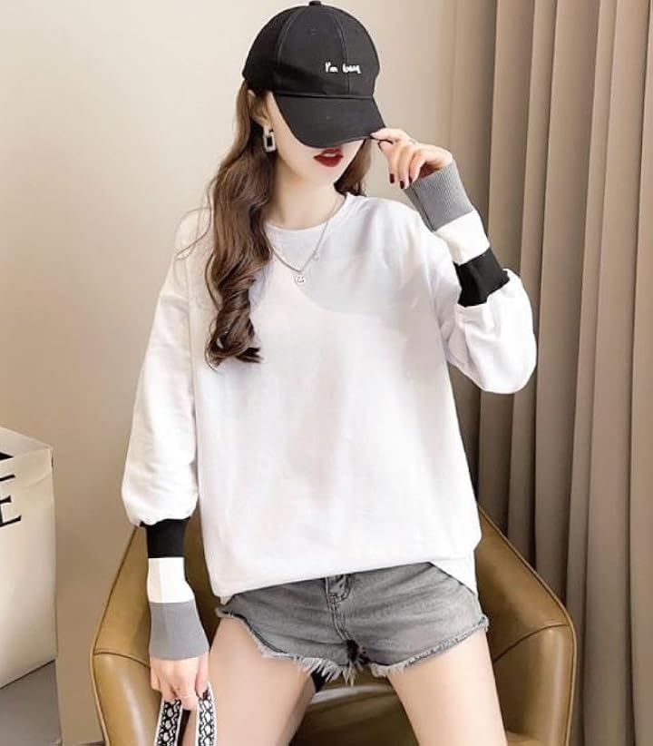 エンプティオ フェミニン 長袖 シャツ クルーネック 可愛い トップス オシャレ カットソー きれいめ モダン レディース エレガント 韓国 エスニック 大人 スウェット トレーナー トレーニング リブ ロンティー
