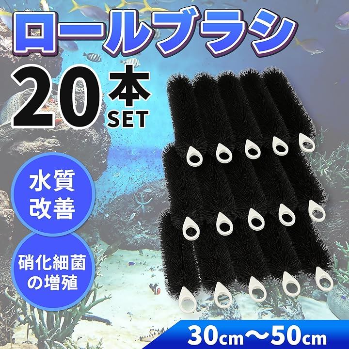ロールフィルター 20本セット ブラック 濾過 ろ過 水槽 ロールブラシ 吊り下げ 横置き 汚れ除去 外部 ろ材