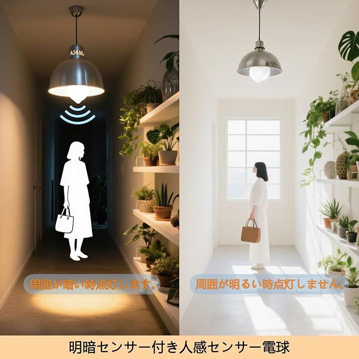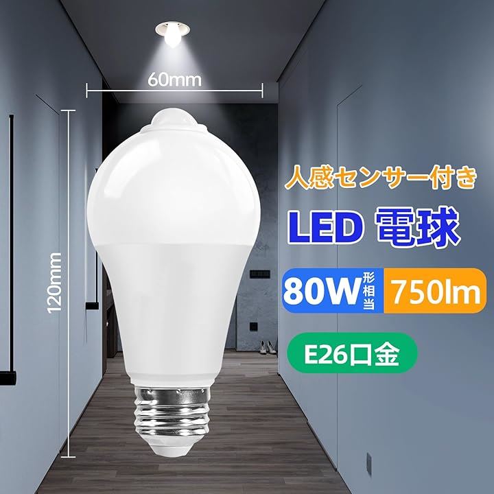 LED電球、光センサーと人体センサー付き、E26口金、ハロゲン電球80