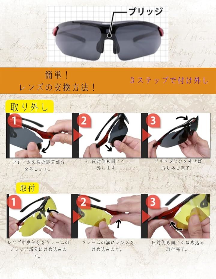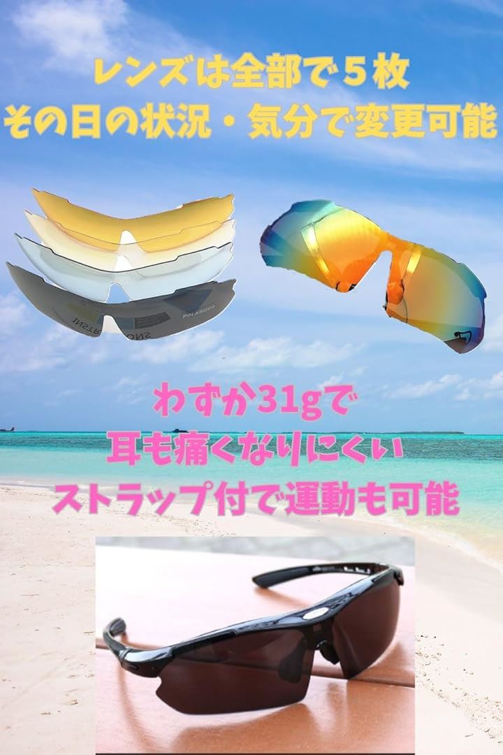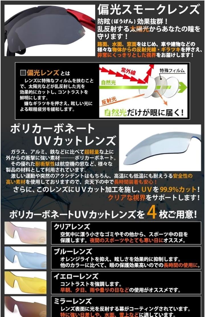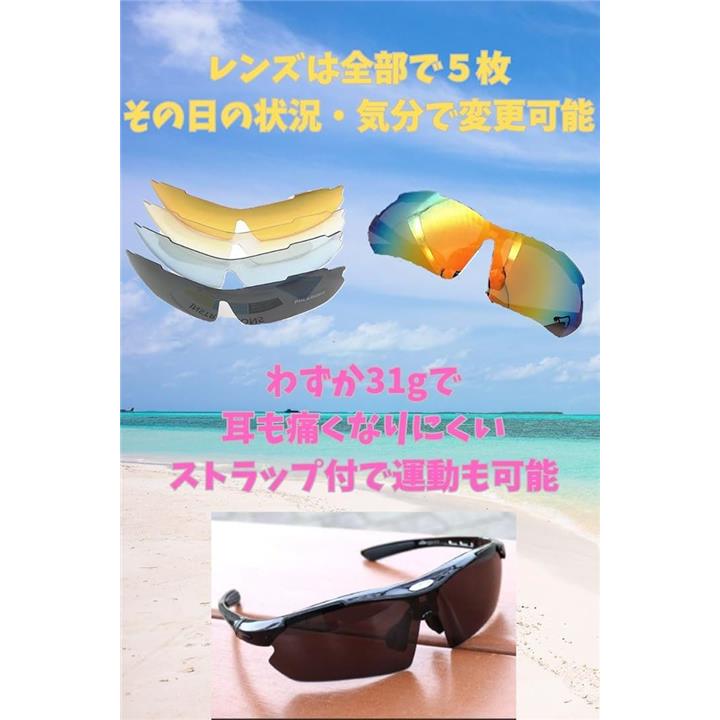 スポーツサングラス 偏光レンズ ケース付き 交換レンズ5枚 ロードバイク 自転車 耐衝撃 フルセット JAPANフィット 超軽量 UV400 紫外線カット ミラー イエロー クリア 釣り 野球 テニス ゴルフ スキー ランニング ドライブ メンズ レディース