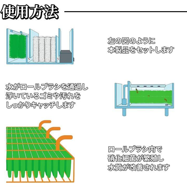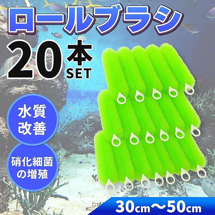 ロールフィルター フィルターブラシ 20本セット グリーン 水槽 濾過 ろ過 汚れ除去 吊り下げ 横置き ろ材 外部