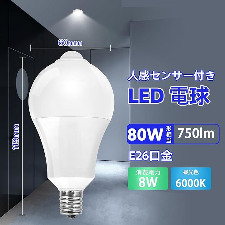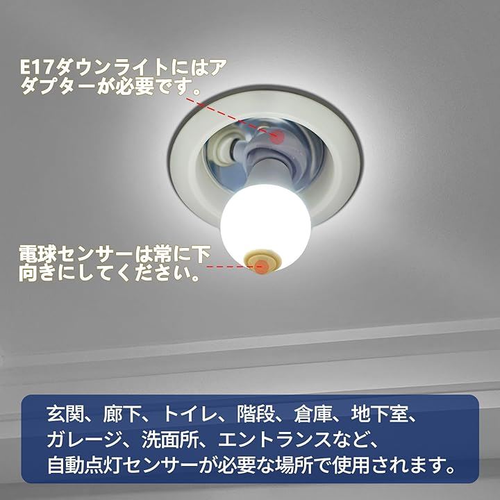 LED電球 光センサーと人体センサー付き E17口金 ハロゲン電球80 Wに相当
