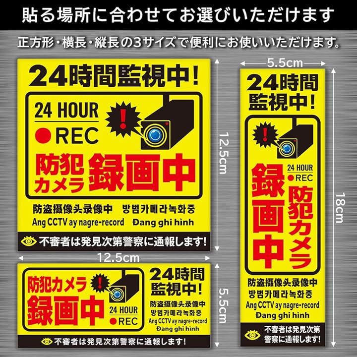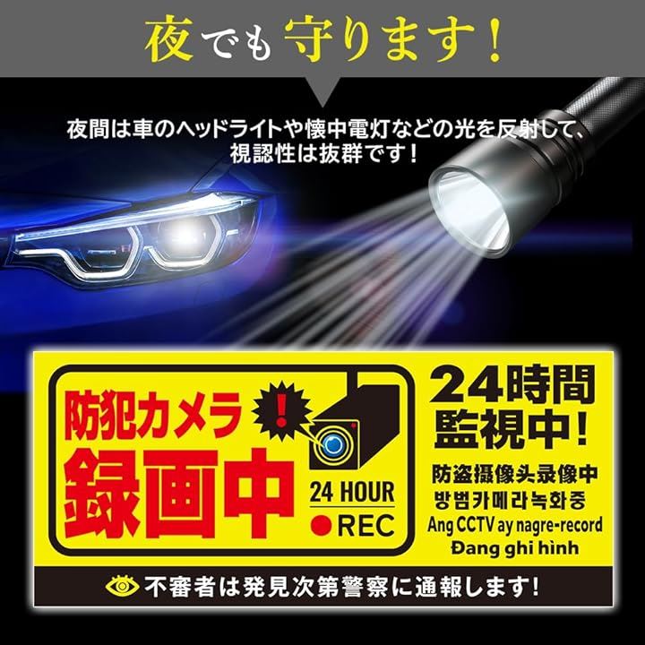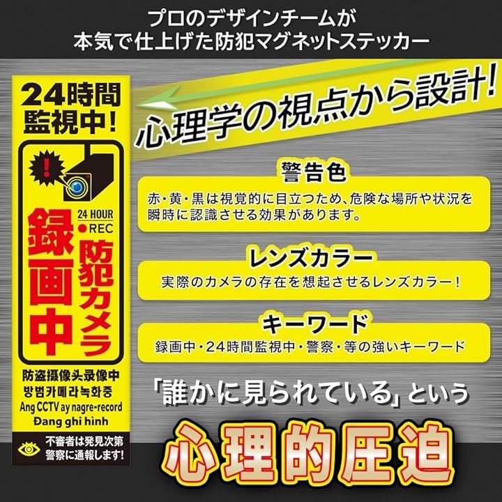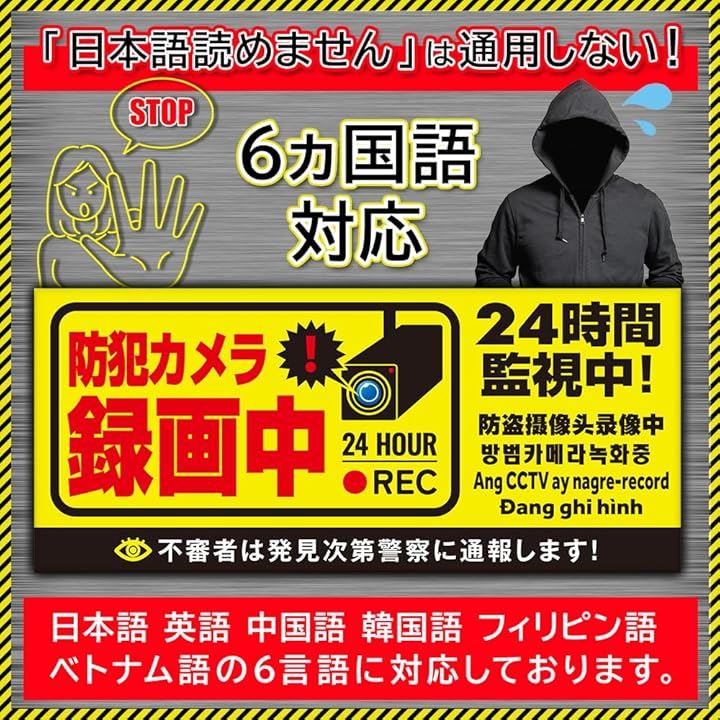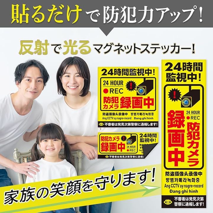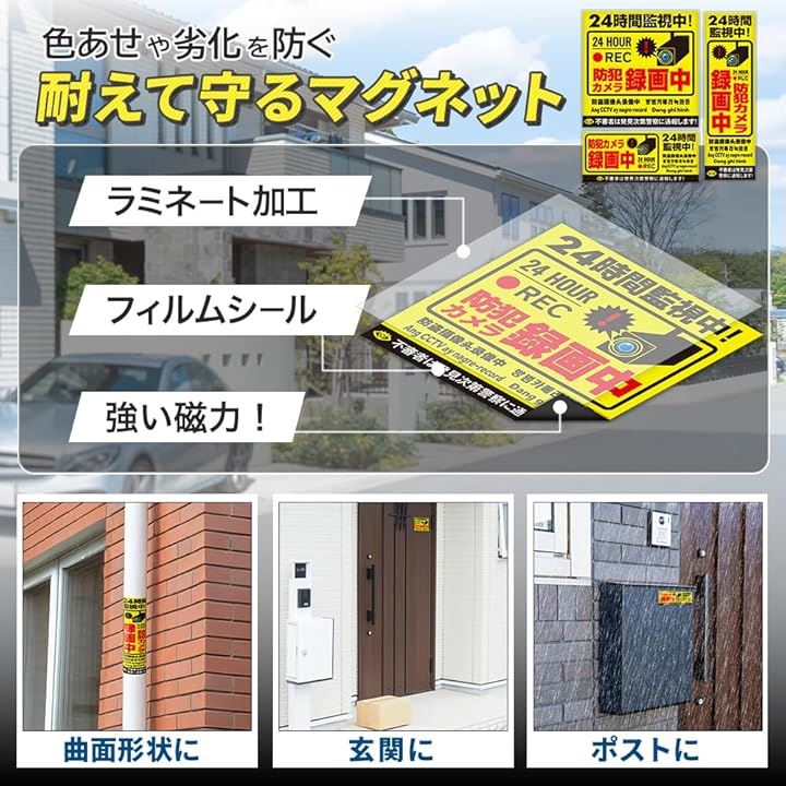 防犯カメラ マグネット 作動中 耐光/耐水/耐候/反射 シール 屋外6カ国語に対応