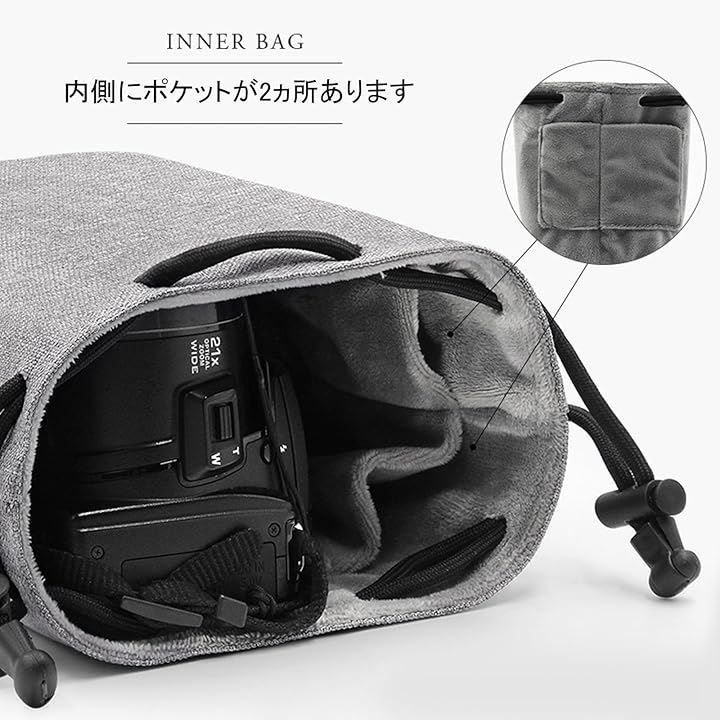 カメラポーチ 防水 小型 巾着 一眼レフ ミラーレス ミニ コンデジ 小さめ