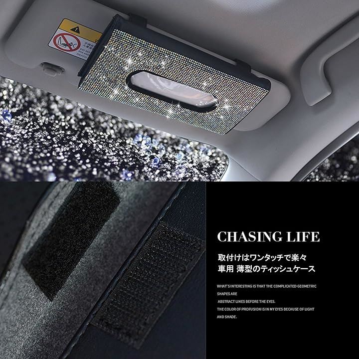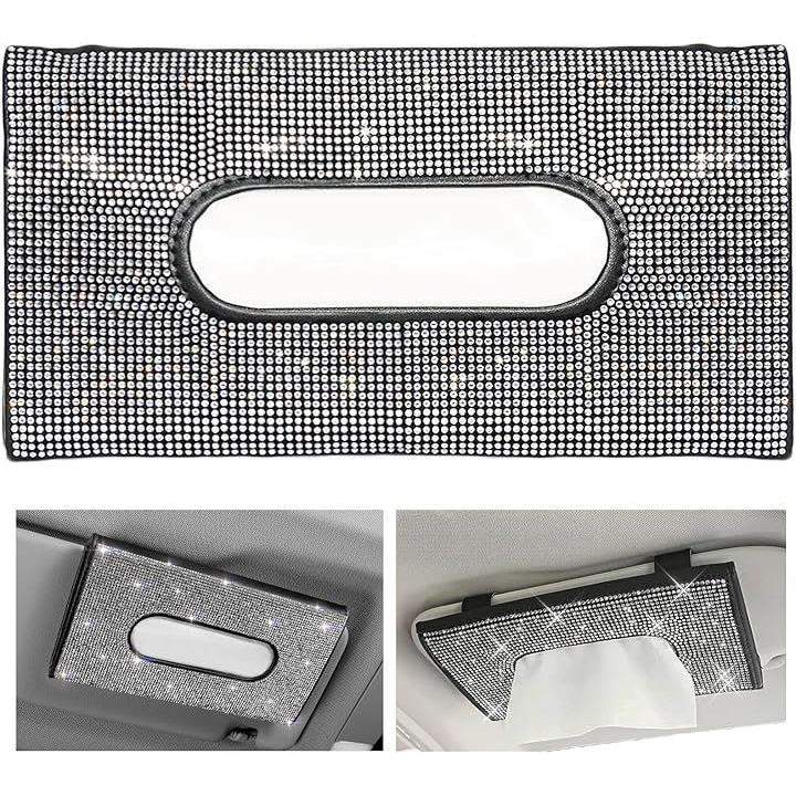 車 ラインストーン サンバイザー ティッシュケース ホルダー 薄型 かわいい 車内 装飾