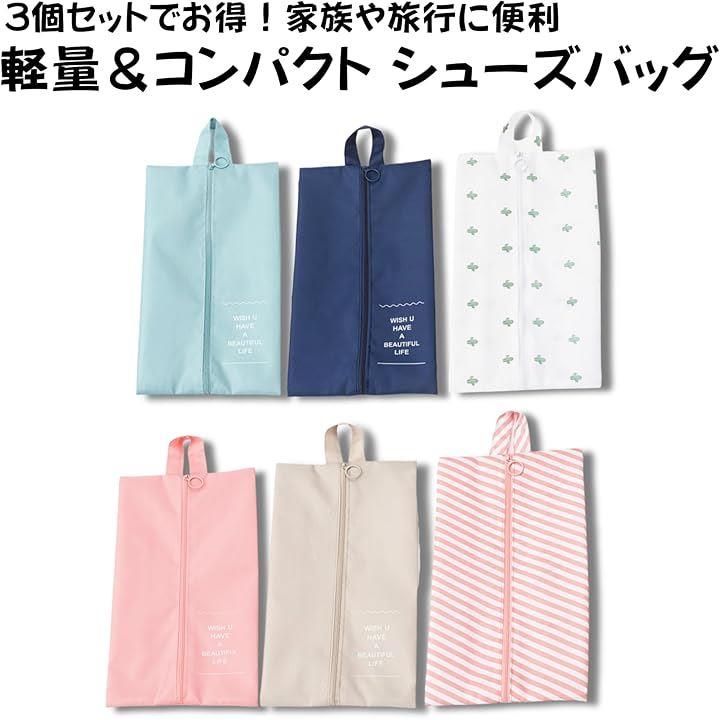 シューズバッグ 3枚セット 防水 防塵 防臭 軽量 シューズケース 靴収納袋 旅行 スポーツ ジム用