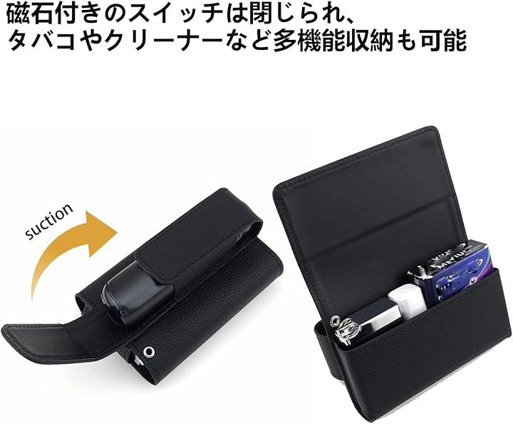 ケースコンパチブルPloom Aura PUレザー保護ケース 加熱式たばこ収納カバー black
