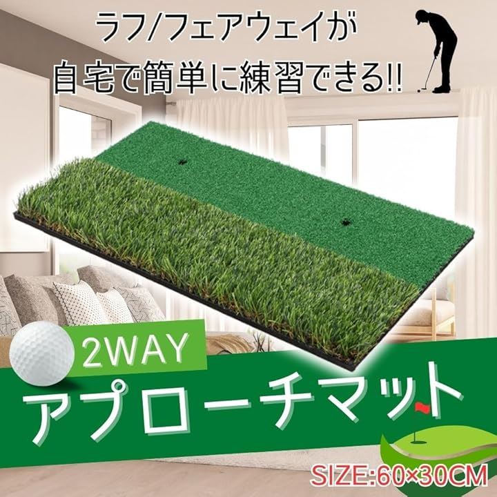 ゴルフ練習マット 60x30cm フェアウェイ+ラフ 2WAY 室内屋外 アプローチ ショット 素振り