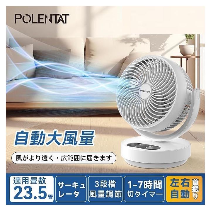 「最新モデル・1台で多機能対応」最新版のPOLENTATサーキュレーターは、高性能DCモーターを搭載し、静音ながらもパワフルな風量でお部屋全体に風をしっかり届けます。