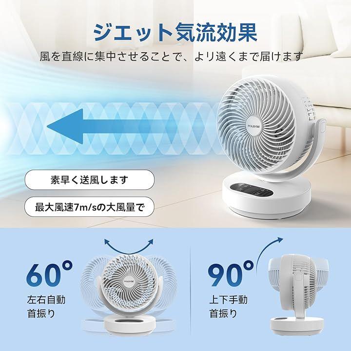 POLENTAT [最新改良型] サーキュレーター 扇風機 DCモーター 静音 10~23畳 左右首振り 分解して洗える お手入れ簡単 リモコン付き 壁掛け パワフル送風 3段階風量 |
