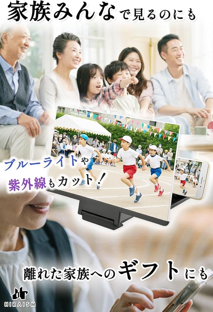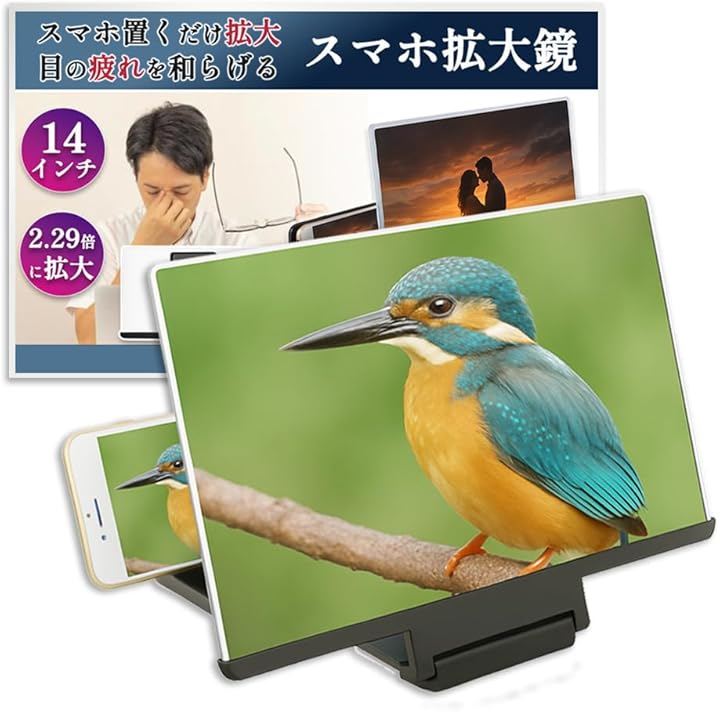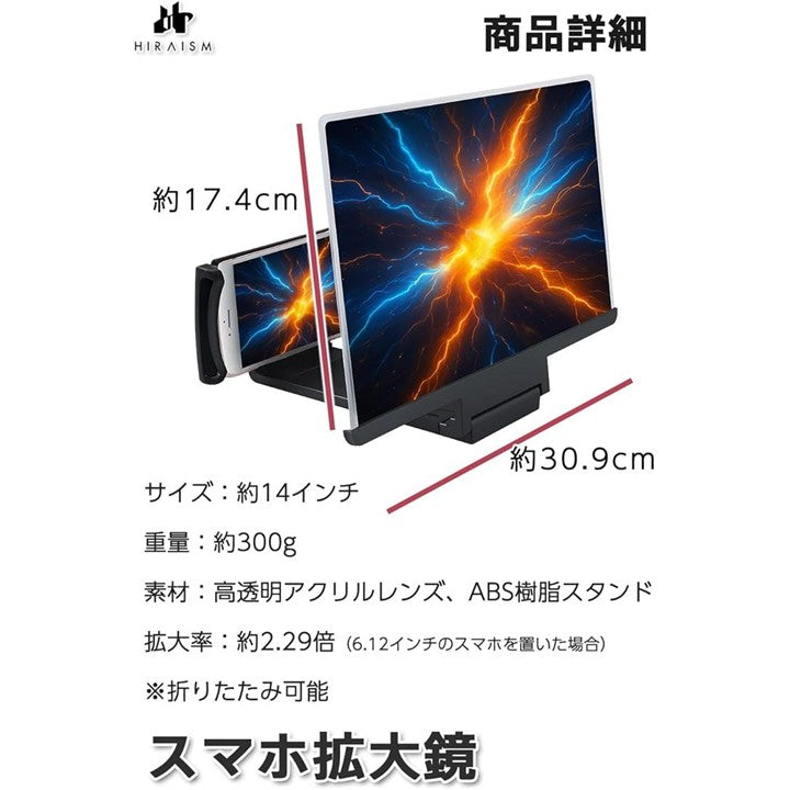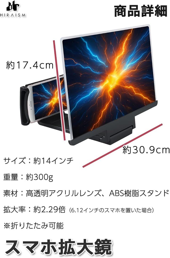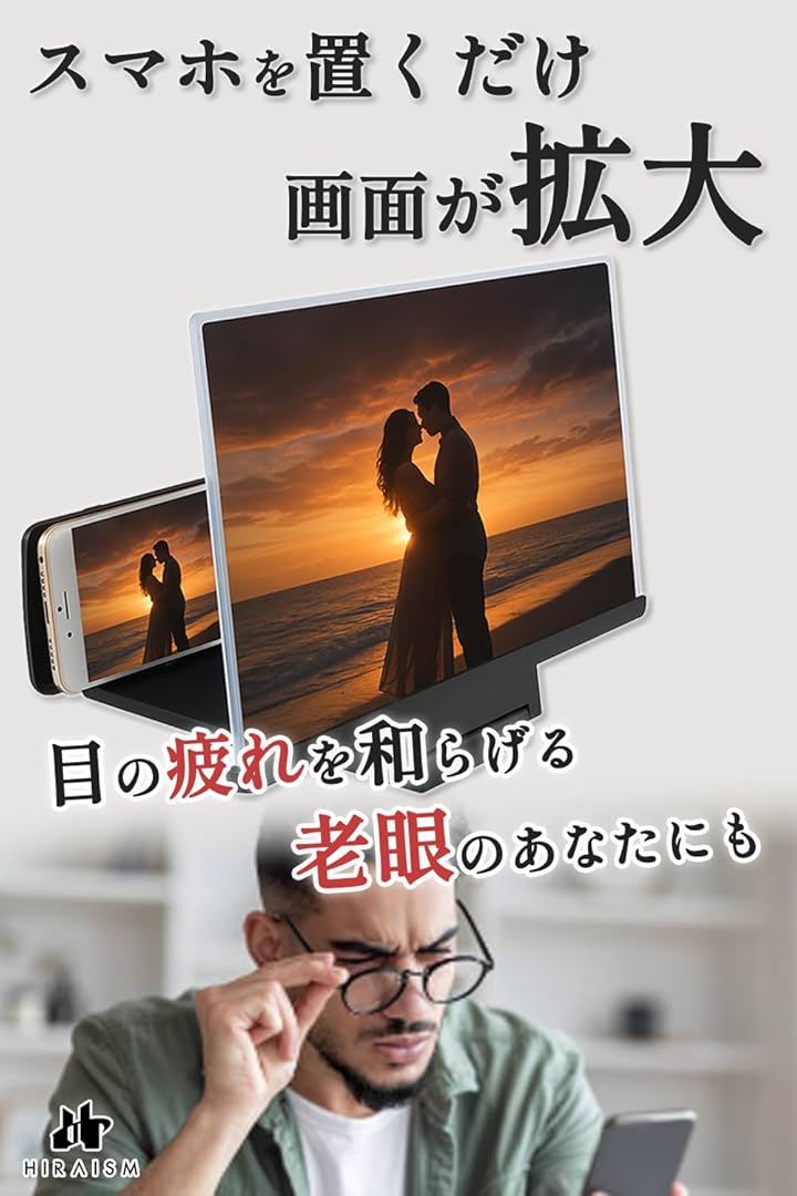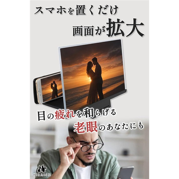 スマホ拡大鏡 スクリーンアンプ スタンド型 ブルーライトカット 折りたたみ式 軽量 携帯便利 フレームレス 360度回転