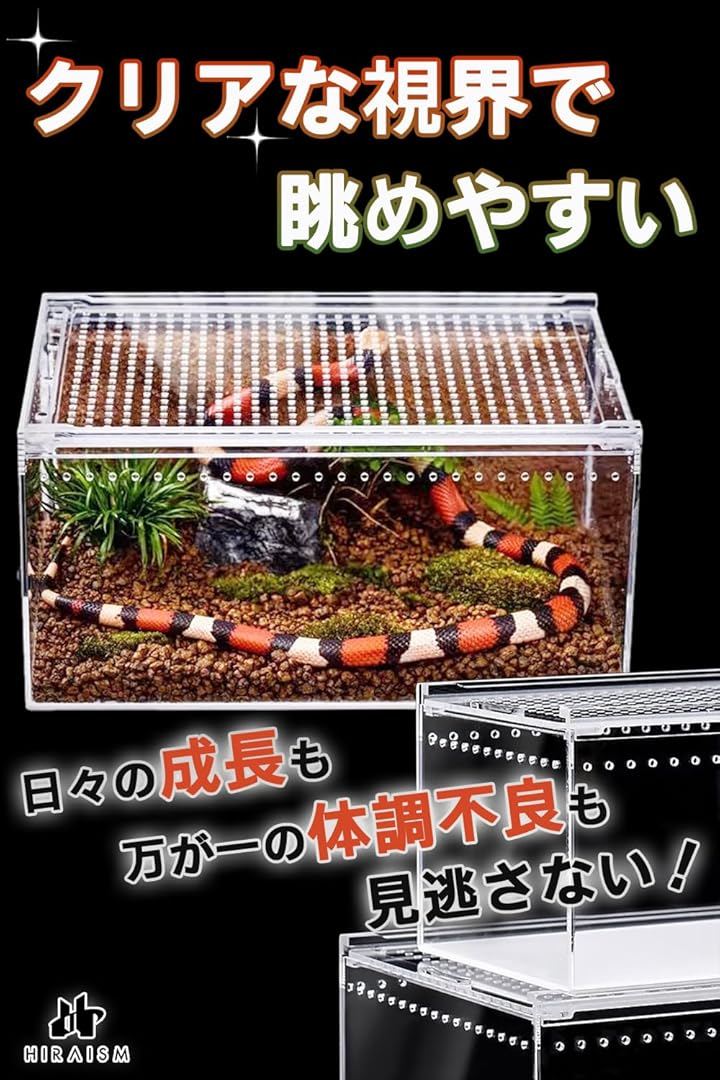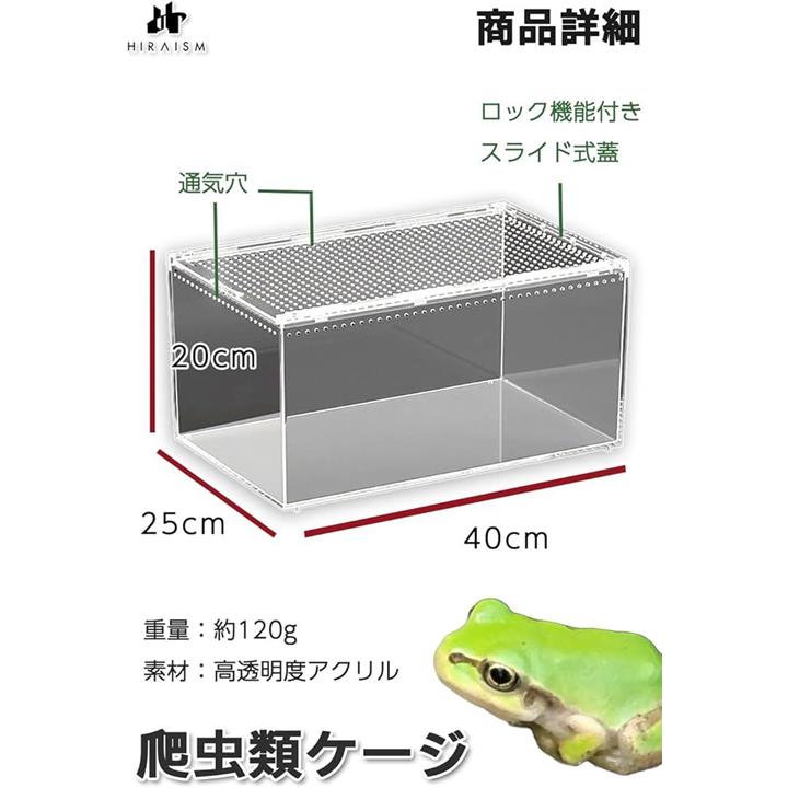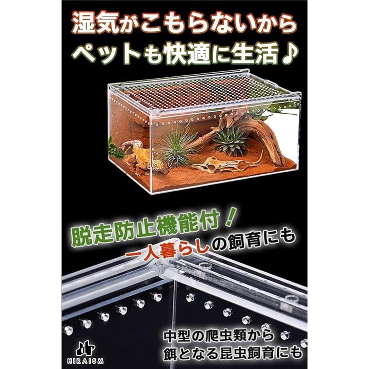 爬虫類 ケージ レプタイルボックス 飼育 レオパ カナヘビ トカゲ イモリ ヤモリ クモ カエル サソリ アクリル製 透明 スライド蓋 通気穴あり
