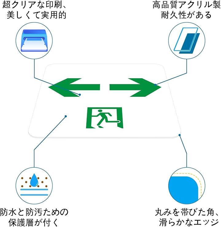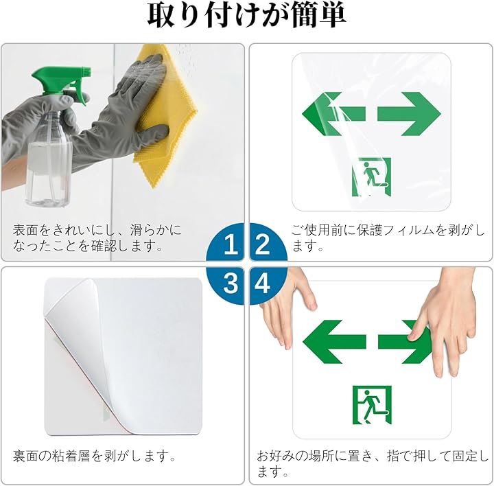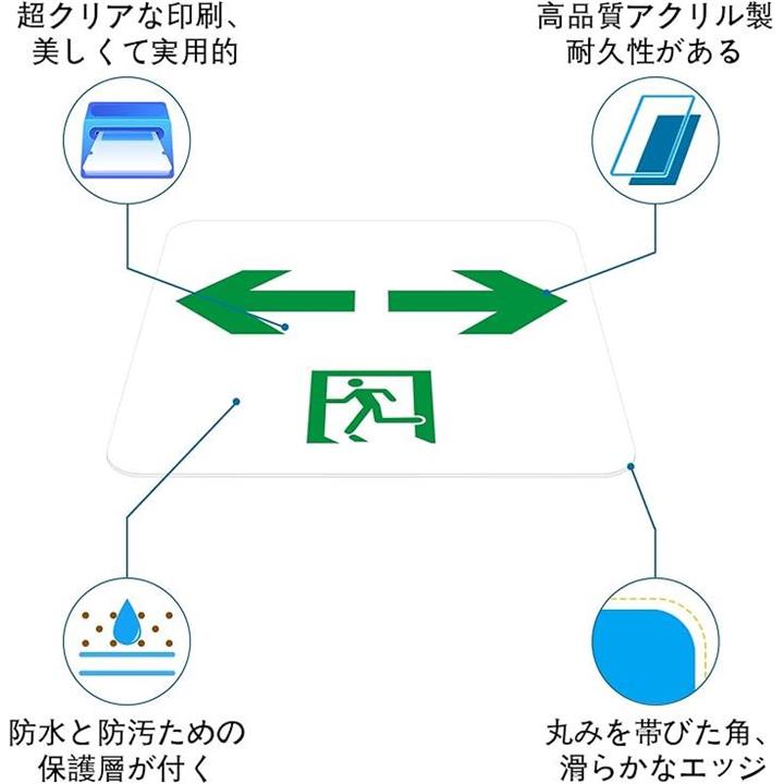 非常口 看板 EXIT 緊急出口 安全出口ステッカー サインプレート 避難誘導標識 左右方向 12x12cm アクリル製 取付簡単 UV印刷 防水 2枚入り