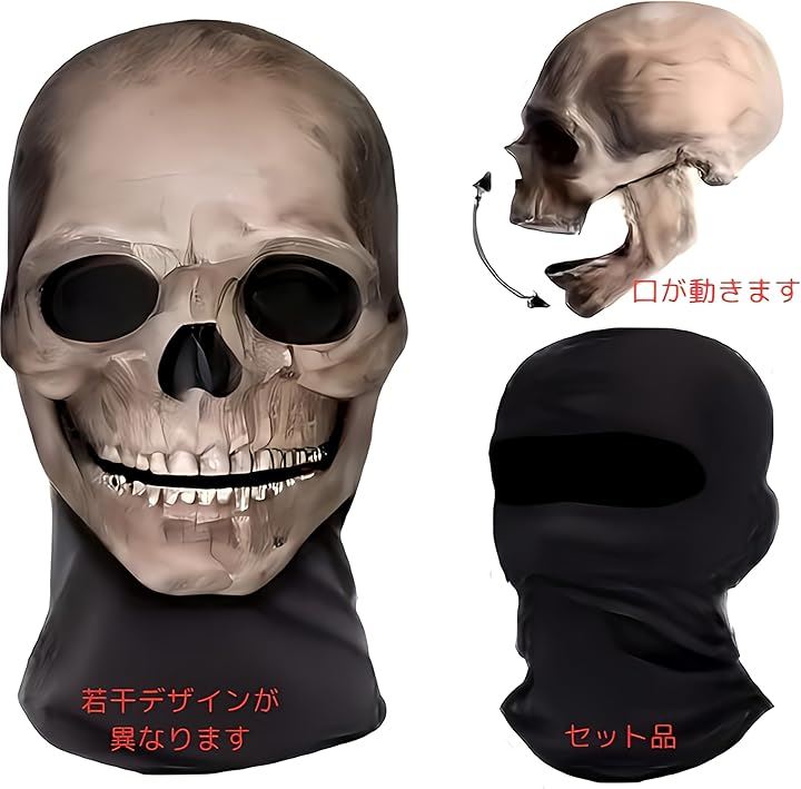 骸骨 マスクセット ハロウィン 仮装 ガイコツ 口が動く お化け屋敷 コスプレ ラバー ホラー 仮面 お面 ドクロ