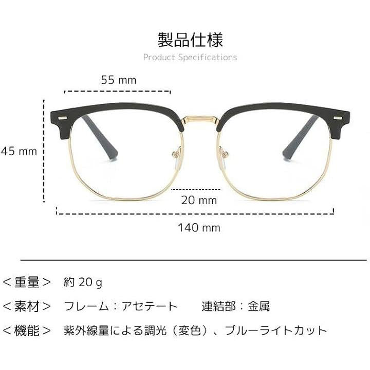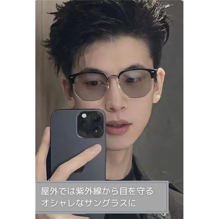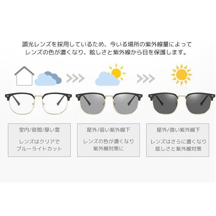 調光サングラス 4点セット 紫外線 UV ブルーライト カット クラシック レトロ サーモント オシャレ 紫外線対策 伊達 眼鏡 メガネ メンズ レディース プレゼント