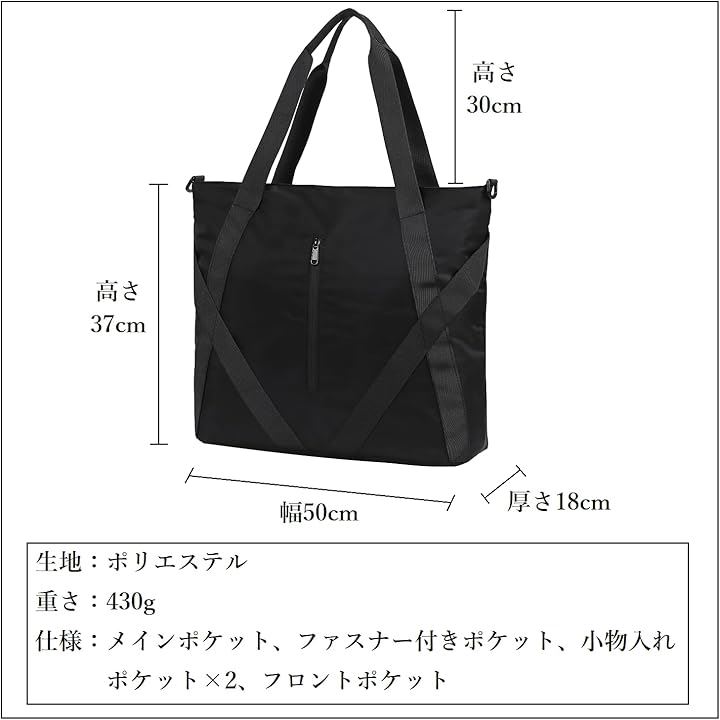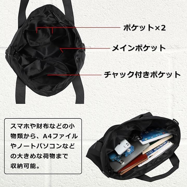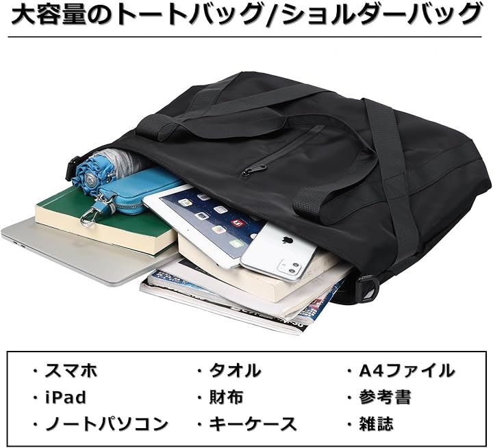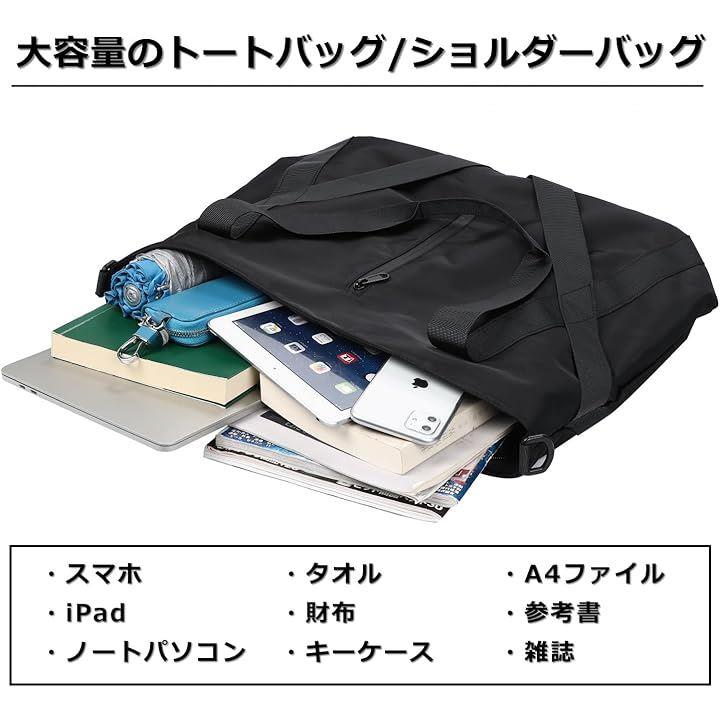 トートバッグ 大容量 ショルダーバッグ メンズ レディース 2WAY 撥水 軽量 A4収納 通勤 通学 旅行 エコバッグ ファスナー付き